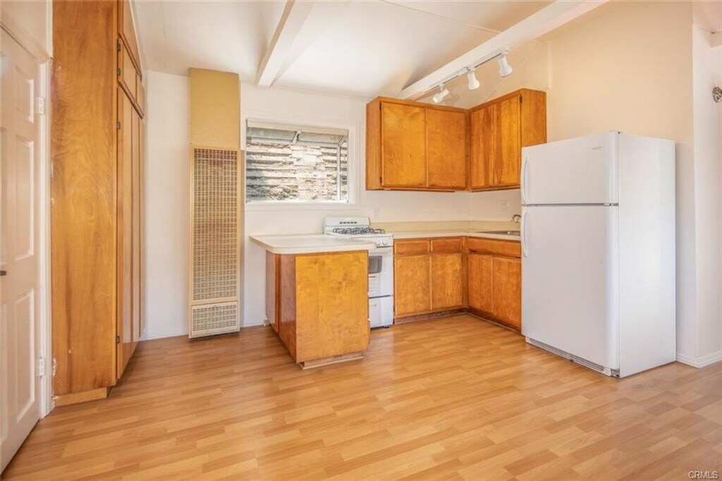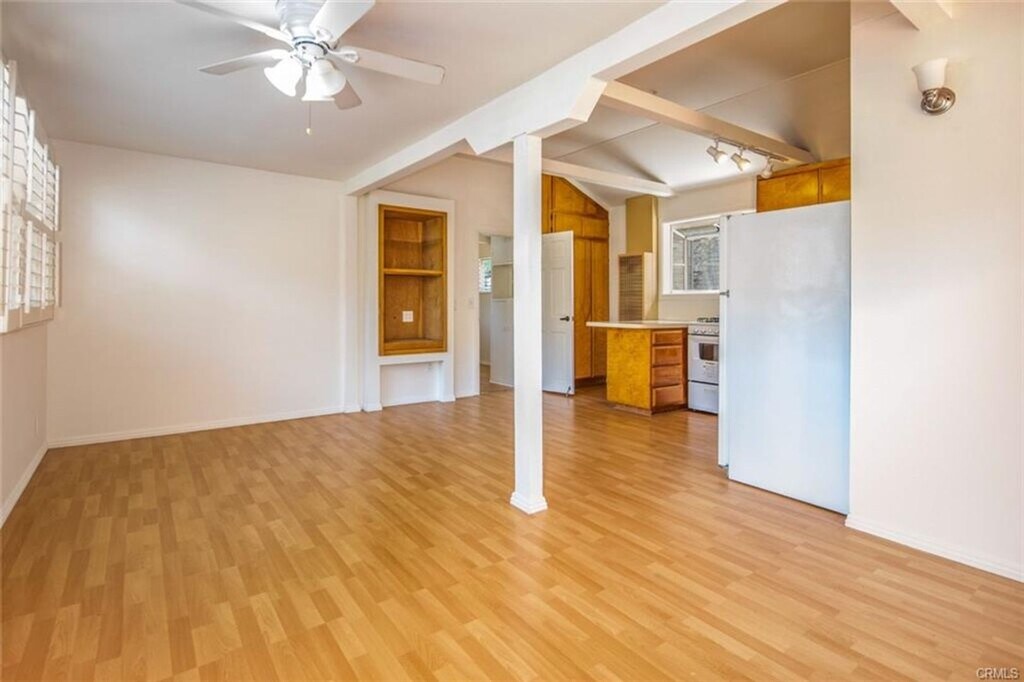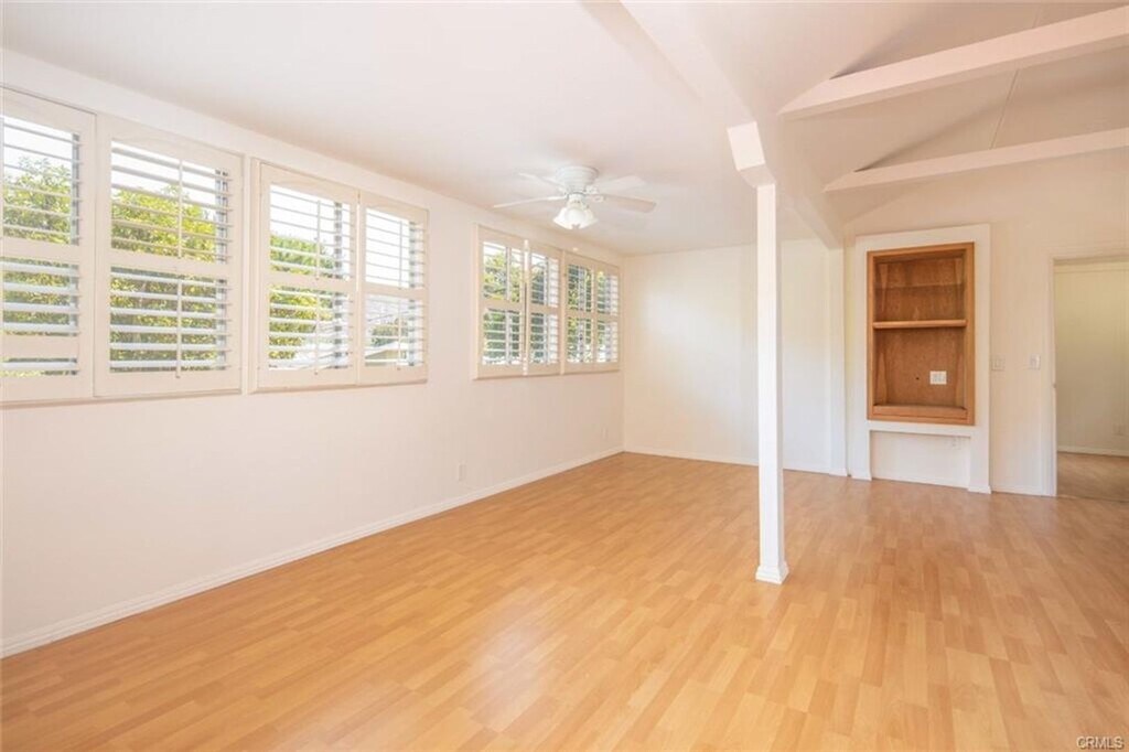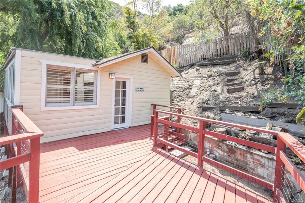 Often referred to as the Laguna Canyon Treehouse, this unique home offers a rare retreat surrounded by panoramic canyon and hillside views. Tucked away in a secluded setting, the property features laminate flooring throughout, plantation shutters, beamed ceilings, a well-appointed kitchen, and a clean, updated bathroom. The bedroom is cozy in size but offers generous closet space. While there are steps leading up to the home, the spacious deck and sweeping views make the journey well worth it. Utilities including water, trash, gas, and electric are all included. Convenient open parking is available directly across the street.