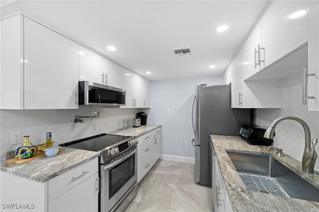 Available immediately for annual rental. Stunning,renovated,updated,unfurnished unit in a building on a canal. Lovely outdoor deck facing the canal for common use to entertain and relax. Dock is available to launch kayak or paddle board if so desired. High-end finishes throughout the unit with marble tile,dark grey countertops and kitchen cabinets,and high-end appliances. The interior decor is beautiful,tasteful,and the unit is move in ready for your own furnishings.