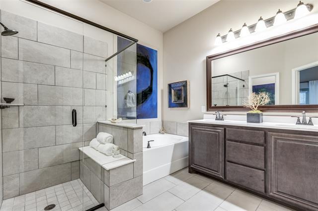 Live Minutes from the PGA Frisco in Paloma Creek! Four-bedroom, three-bath home, with a two-car garage completed in 2020. Cathedral beamed double volume ceilings with an open-concept gourmet kitchen with high-end finishes and natural light. The kitchen, breakfast, and family room overlook the spacious backyard with a covered patio for entertaining! The primary suite is on the first floor and offers an expansive bedroom with a sitting area, a large bathroom, a walk-in closet: two additional guest rooms, and a full bath. The second floor holds a large game room or living room, plus an additional guest room or home office space with a full bathroom. Experience this 1,500-acre community on wooded land, including seven playgrounds, a dog park, four resort-style pools, two fitness centers, and three Clubhouses, with lakeside trails to hike and bike. PGA Frisco offers championship golf courses, Omni PGA Resort, and multiple restaurants and bars.