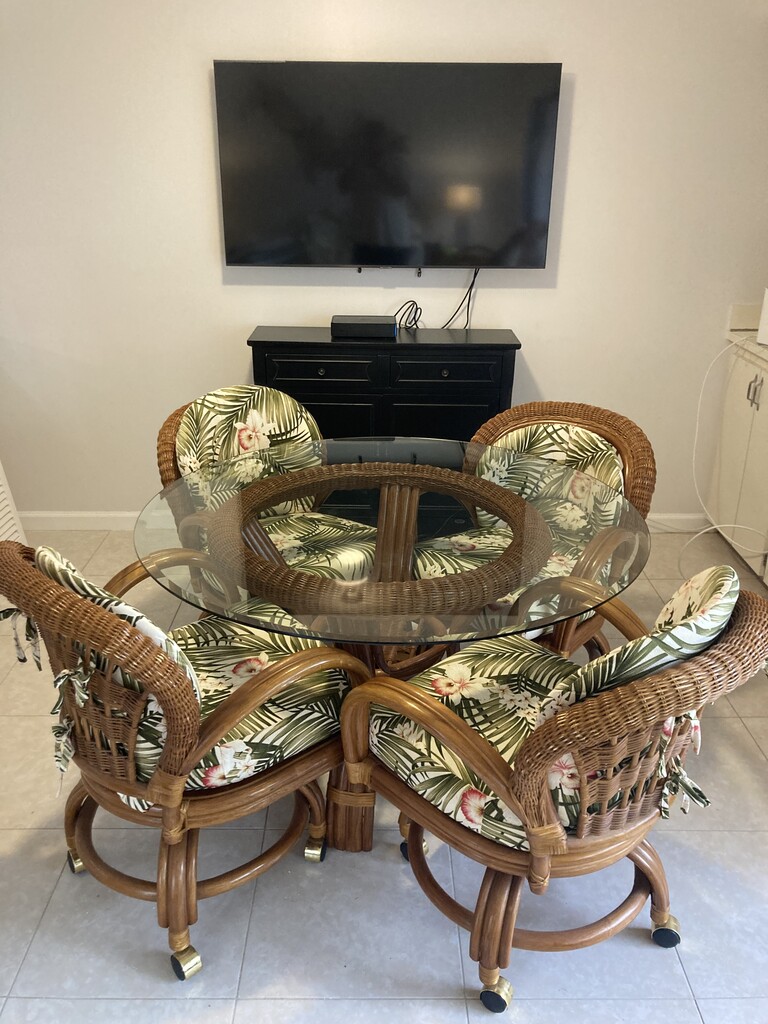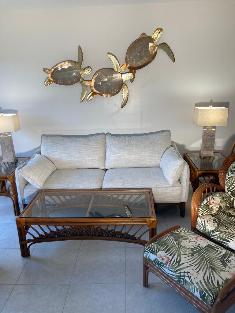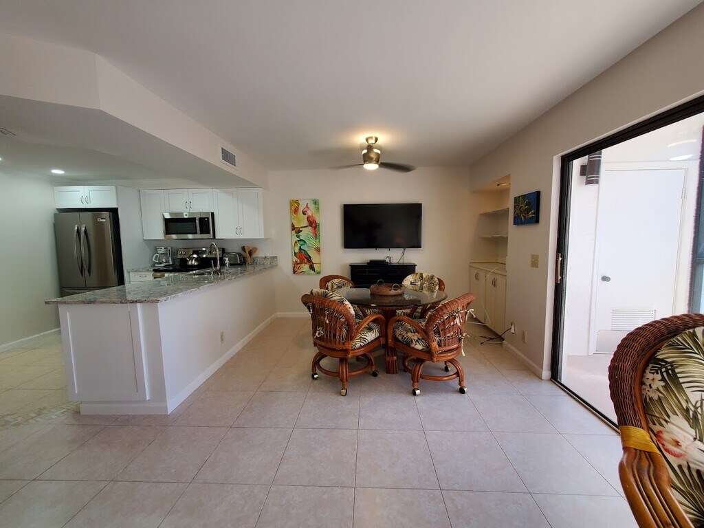 This condo is a 2-minute walk to the best Ocean beach in Jupiter. Beautifully remodeled 1 bedroom, 1.5 bath condo in Jupiter Ocean and Racquet Club. The closest building to the beach! You will be close to Love St, dining, shopping and the waterfront restaurants. Recent renovations include new kitchen and bathrooms with clean white shaker cabinets and granite counters. All remodeled kitchen appliances, washer and dryer as well as a new 75" flat screen Smart Samsung TV. The spacious bedroom has a king size, Sterns & Foster Estate collection mattress and huge walk-in closet. Relax and enjoy the very private fully screened balcony off the living area with a small stream view of an otter, ducks, birds and turtles. Multiple tennis courts. Tennis membership available, Two pools. Bicycle parking. Our large, heated pool is next to the unit. Dedicated parking spot plus guest parking. This completely turnkey rental has everything you would need including all utilities, basic cable and Wi-Fi. Elevator in building. Everything u need without even crossing rte 1: Publix, fine restaurants etc. NO smoking, pets. $150 HOA application fee. Available months: October '25 $2,500 Nov '25 $3,000 Dec. '25 $3,500 April '26 $5,000 Multiple months preferred with discounts available for 2+ months.