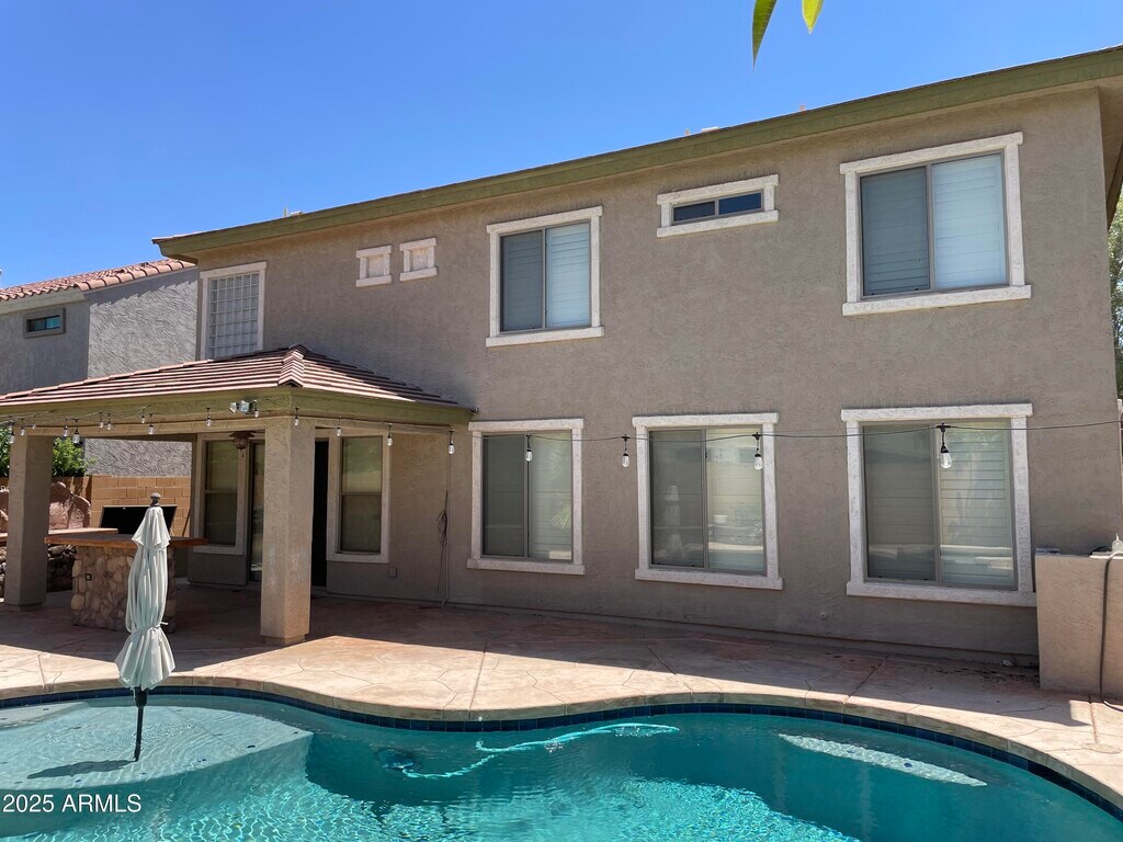 This beautifully maintained home offers over 3,000 sq ft of living space,including a spacious great room filled with natural light and direct backyard access. Kitchen features granite countertops,stainless steel appliances,gorgeous cabinetry,a breakfast bar,pantry,and built-in desk. You'll also find a den perfect for a home office or study. Master bedroom includes a large soaking tub,double sink vanity and walk in closet. All secondary bedrooms are nicely sized. Step outside to your private backyard oasis with a covered patio and sparkling pool ideal for entertaining or relaxing. Located in the sought-after Greer Ranch community,which offers walking and biking paths,playgrounds,and a family-friendly atmosphere. Don't miss this incredible opportunity!