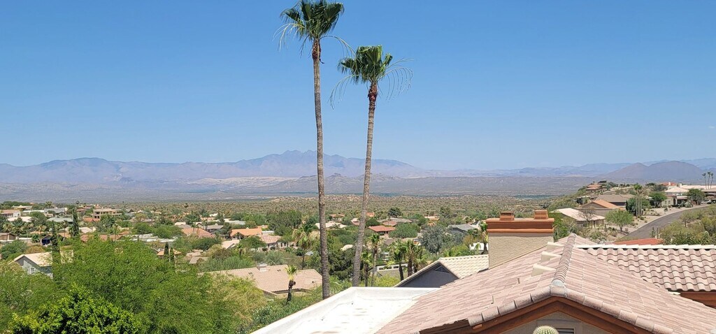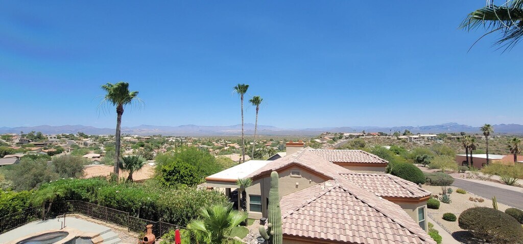 **DO NOT APPLY ONLINE-CONTACT OFFICE FOR OFF SEASON AND/OR LONG-TERM RATES- Beautiful 2 level single family home for your Arizona winter vacation with fantastic views. High ceilings & open floor plan. Master bedroom is on lower level with king size bed & bath with walk in shower & separate tub. Living room with fireplace. The 2 guest bedrooms are upstairs with a queen size bed other king and each with a bath. One bedroom has a private balcony. Upstairs bonus/ family room/loft with TV, wet bar & expansive viewing balcony. Private heated pool & spa (all propane usage is tenants responsibility), large covered patio, with built in BBQ grill plus outdoor fire table great for out door living. Located on a quiet cul-de-sac. (NOT AVAILABLE 1/1/26-3/31/26)