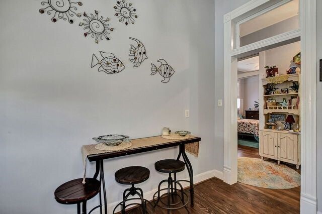 Spacious 2nd floor restored Victorian apartment. high ceilings,original pine flooring. Updated kitchen and bath. Light and bright with plenty of windows- and of course,a porch above the street. Close to UTMB,downtown Galveston,and blocks to the Seawall. Actual unit may not be exactly the same as photos. MLS# 8721960
