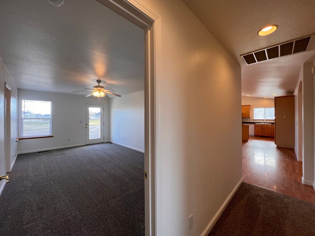 3BD/2BA Home in Desert Lakes Subdivision & HOA. Kitchen features gas range, refrigerator, dishwasher and microwave, additional features include pantry, and breakfast bar. Central heat and air. Washer and dryer included for tenant convenience. Master bedroom has a large closet and door leading to a balcony with golf course view. Master bath has large tub and his and hers sinks and separate shower. 1709 SF, 3 Car Garage NO PETS