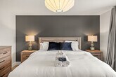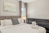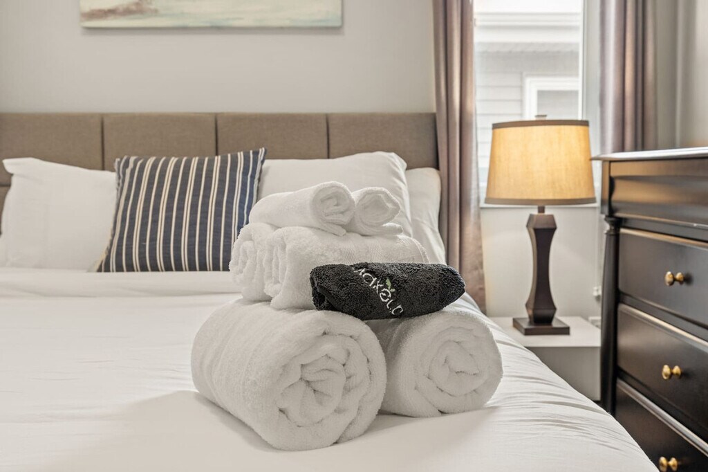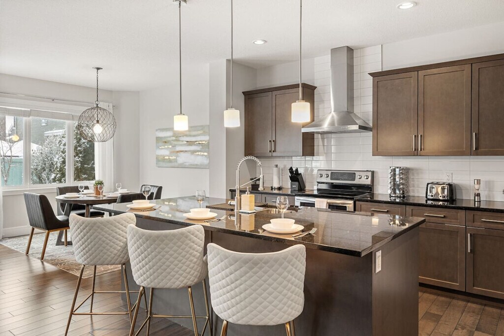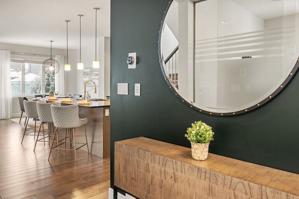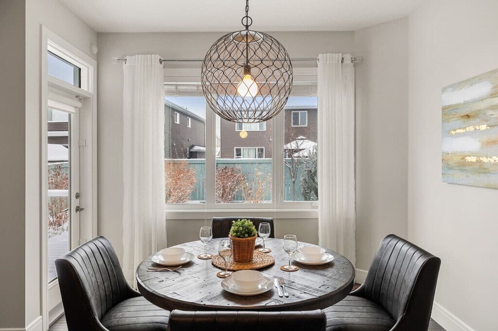 Experience luxury and comfort in this fully detached home located in the picturesque neighborhood of Keswick. This spacious residence offers three bedrooms, including a king-size bed and two queen beds, along with two full-size bathrooms and a half bathroom. Enjoy the privacy of having the entire home to yourself, complete with two living rooms featuring three comfortable sofas, a fireplace, and central AC and heating. The home also includes an office with a 24-inch monitor, a fully equipped kitchen, and a washer and dryer. A double car garage is available for your convenience. The home is thoughtfully designed with modern amenities to enhance your stay. Relax in the two inviting living rooms, each equipped with a 65-inch smart TV and Netflix access. The kitchen boasts stainless steel and custom appliances, including a 4-burner stove, oven, microwave, refrigerator, freezer, and dishwasher. Enjoy complimentary coffee, tea, and water, and dine in the large dining area with island seating and bar stools. Premium linens and pillows are provided for all sleeping arrangements, ensuring a restful night's sleep. Parking is hassle-free with options including a double car garage, driveway parking, and street parking. Additional supplies can be provided during your stay at an extra cost. Situated in a transit-friendly and developing neighborhood, this home offers easy access to Edmonton Transit Service bus routes, making it convenient to explore the city. The area is becoming increasingly walkable with ongoing enhancements to pedestrian pathways and local amenities. Nearby attractions include Sobeys Heritage Valley, Shoppers Drug Mart, Currents of Windermere, and South Edmonton Common, all within a short drive. Major highways, such as Anthony Henday Drive, are just minutes away, facilitating quick travel around Edmonton. Check-in and check-out are fully self-service, providing flexibility for your arrival and departure. The property enforces a strict no-smoking policy, with a $250 CAD fine for violations. Quiet hours are from 10 pm to 7 am to ensure a peaceful environment. No parties, drugs, excessive drinking, or loud music are allowed, and a noise detector is in place to monitor sound levels. Unauthorized late check-out will result in additional fees. Guests are responsible for following city guides on waste disposal, and any infractions may incur fines. Please remove outdoor shoes while inside the home. The home features an office area equipped with a 24-inch monitor, making it ideal for remote work. Fast Wi-Fi is available throughout the property, ensuring a seamless work-from-home experience. A laptop computer is not included. Registration Number: 499696639-001