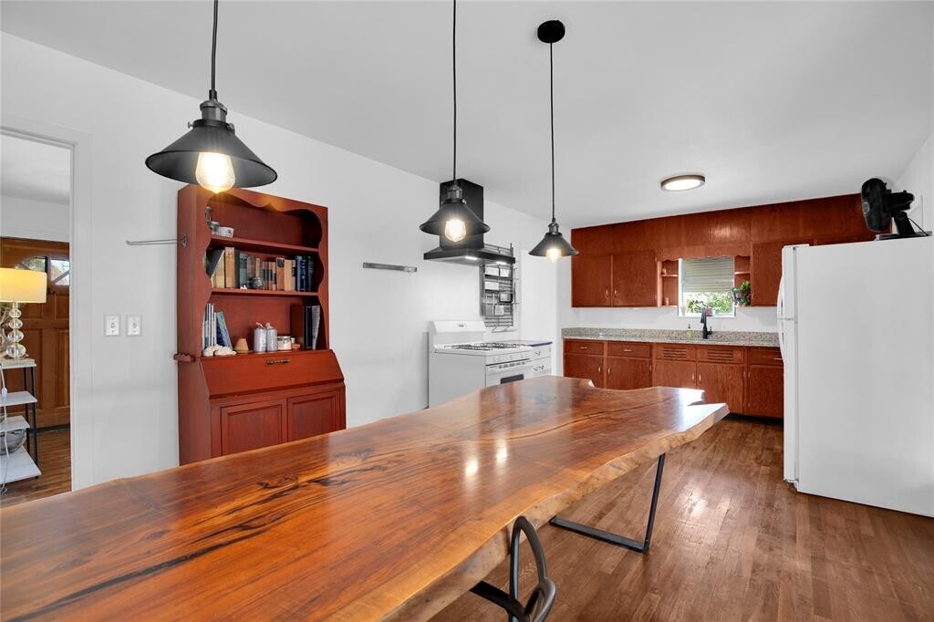 Charming 2-bed, 1-bath farmhouse on 1.47 gated acres near downtown Taylor. This light-filled home features a large living room, hardwood floors throughout, a Vermont Castings wood-burning stove, and a durable metal roof. The spacious kitchen and dining area open to a private covered porch—perfect for quiet mornings or evening dinners. Outside, enjoy nearly an acre of open backyard space, young fruit trees, a plowed vegetable garden, and a chicken coop—ideal for a simple country lifestyle with city convenience. Walk to Heritage Square Park, cafés, local shops, and antique stores. Just 3 minutes to downtown Taylor and 10 minutes to the Samsung site. Come experience this peaceful retreat today.
