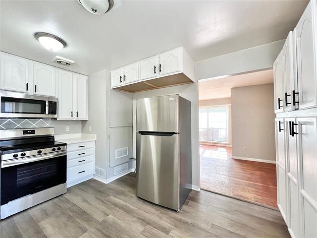 Charming newly renovated 3-bedroom, 1.5-bath home in Arlington! This adorable property features stunning hardwood floors throughout and a spacious living area that flows into a formal dining room—perfect for entertaining. The bright, updated kitchen offers new appliances, flooring, countertops, and a built-in pantry with plenty of natural light. Both bathrooms have been beautifully renovated, and the home boasts fresh paint throughout. Enjoy the extra-large fenced backyard with a detached garage and an additional storage unit for convenience. Pets considered on a case-by-case basis with a pet deposit per pet.