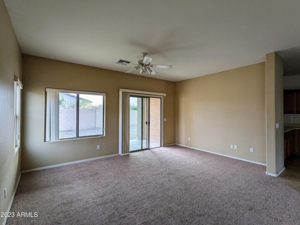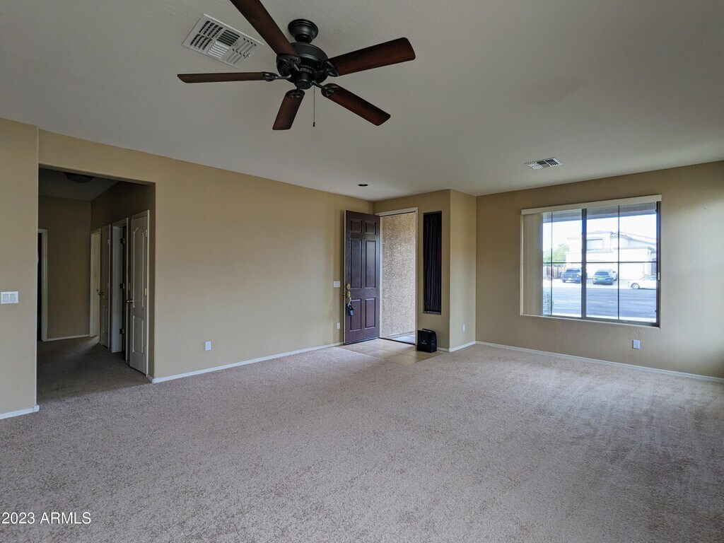 Beautifully updated home in Surprise! Located within the quiet community of Legacy Parc,this single-level house has 1,853 square feet of living space which includes two living areas,three bedrooms plus a den,two full bathroom,and a spacious kitchen with nice maple cabinets,upgraded counter-tops,and newer appliances. The home also has neutral painted walls,carpet in the bedrooms,and tile flooring in all of the right places. Great outdoor space with a large covered patio and low maintenance backyard. Residents of the community also have access to a private park which features a nice grass field and a basketball court. Great location near good schools,grocery stores,and easy access to Loop 303 & Northern Parkway. Just a short drive to endless entertainment and lots of dining options at Village at Prasada (Barrio Queen; Cold Beers & Cheeseburgers; Cooper's Hawk; Fatcats; Kohl's; Lou Malnati's Pizzeria; Marshall's; OHSO Brewery; Ross Dress for Less; Target)