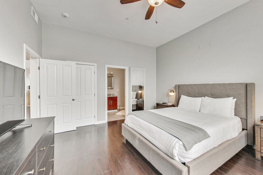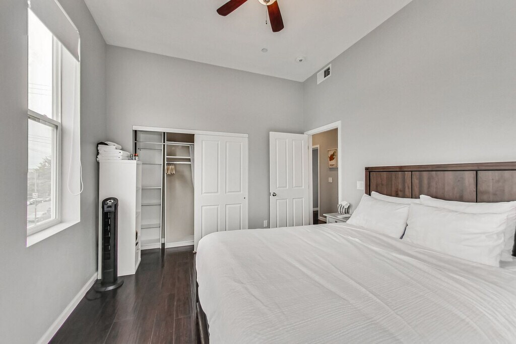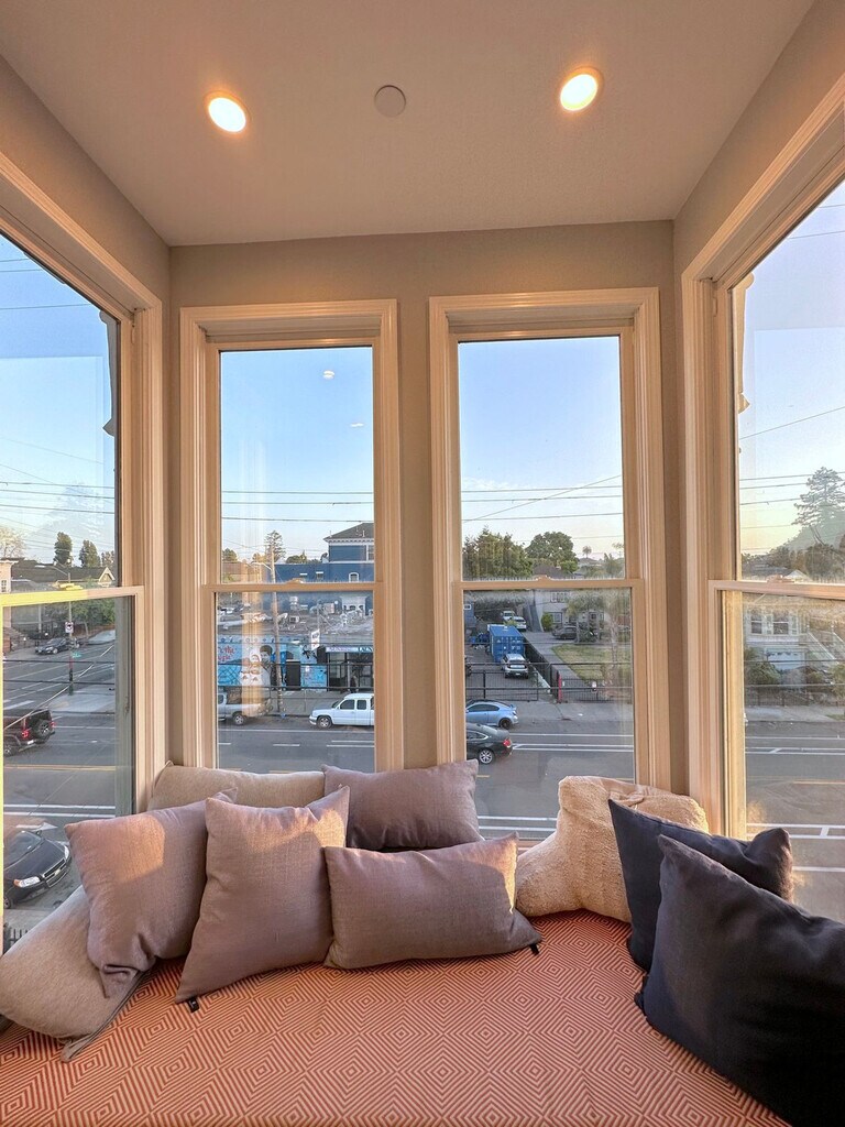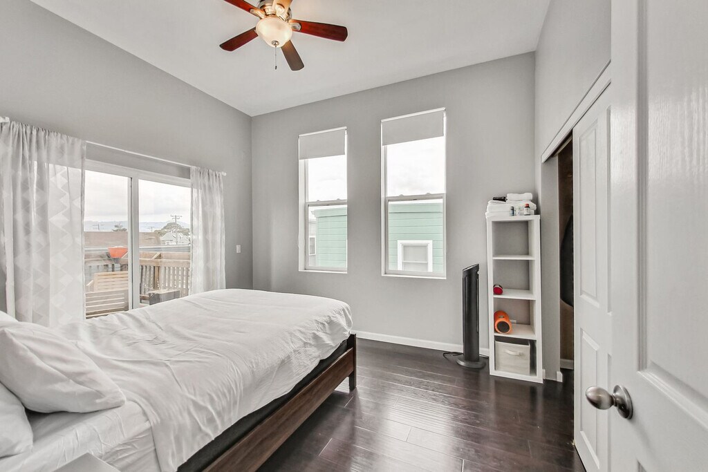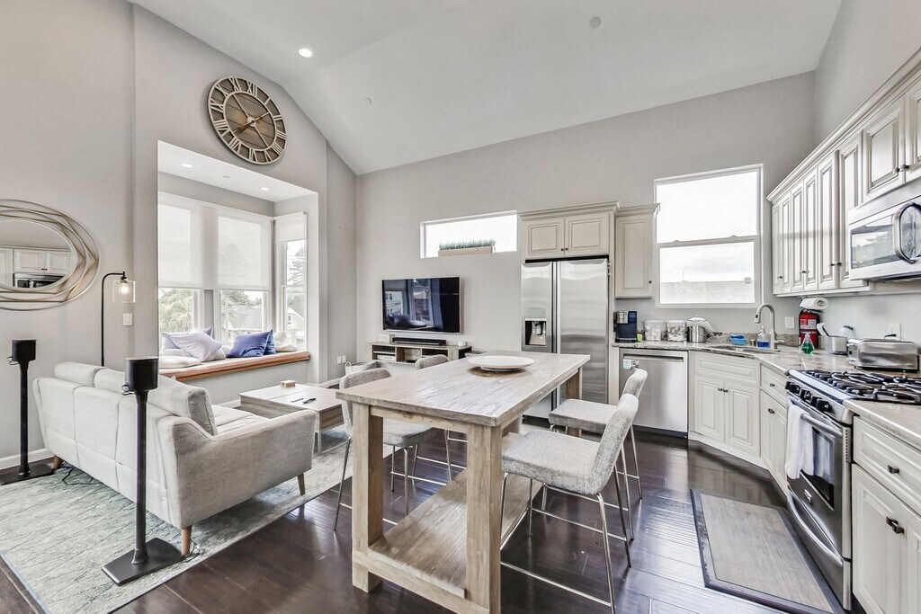 Situated in the up-and-coming West Oakland neighborhood, this home offers easy access to San Francisco via freeway or BART. Newly painted with beautiful hardwood floors and high ceilings, the house features a large open concept living, dining, and kitchen area, making it a comfortable home base for your vacation or work trip. The property is on the top level of a three-story house, requiring climbing a significant number of stairs, including a large flight from the ground level to the entry door and a long flight inside to the flat. The property is fenced and equipped with a gate with an electronic lock. The front of the unit boasts an open concept living, dining, and kitchen area, furnished to create distinct dining and living spaces. A sofa faces the UHD TV and is equipped with a Sonos sound system. The dining table seats four, with an additional sitting area behind the sofa providing two more chairs for larger groups. The shared bathroom is located at the top of the stairs next to the washer and dryer. The master bedroom, located at the end of the hallway, features a walk-in closet and an en-suite bathroom with a walk-in shower. The shared bathroom includes a shower over tub. Premium designer linens and towels, coffee and tea, and Kiehl's bath and body products are provided. Located in West Oakland, a historically working-class neighborhood, the area is filled with industrial warehouses, ornate Victorians, and new condo developments. The neighborhood's proximity to Emeryville, Berkeley, and San Francisco via the San Francisco–Oakland Bay Bridge and BART makes it a central location with warmer weather than San Francisco. Within walking distance, you'll find a lively farmer's market every Sunday morning, Kowbird fried chicken, Horn barbecue, Kilovolt coffee, and rock climbing at the old Pacific Pipe warehouse. The West Oakland BART station is about an 11-15 minute walk from the condo. Common sense is encouraged in this up-and-coming area, as surroundings can be dirty at times and there can be incidents of crime. Do not leave valuables in your car, and if your car has a trunk, leave the seats folded down to show the trunk is empty. Pay attention to your surroundings and avoid being distracted on your phone. A digital guidebook with information about the house and neighborhood will be sent with your check-in instructions. Enhanced cleaning and sanitation procedures have been implemented, which increases the total cleaning fee rate. [SI]
