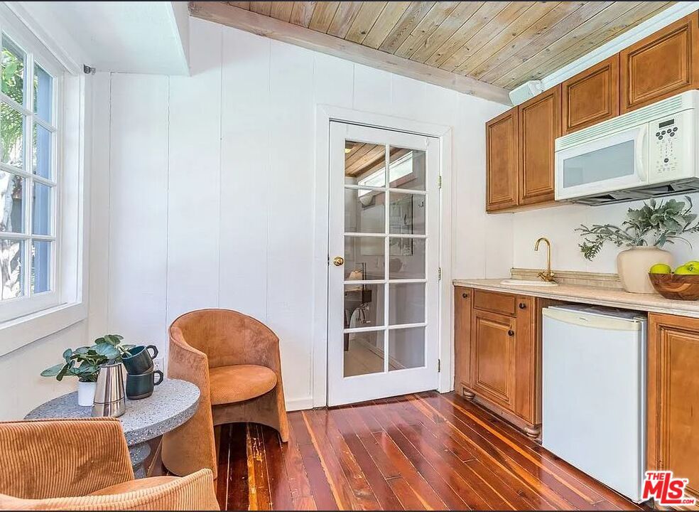 Sunset Square Stunner - West Hollywood Craftsman with Pool & Guest House. Welcome to this charming Craftsman-style retreat in the heart of coveted Sunset Square, where timeless character meets modern California living. Perfectly situated mid-block on a picturesque, tree-lined street, this 2-bedroom, 2-bathroom home with an office offers a seamless blend of comfort, style, and indoor/outdoor living. Step inside to a light-filled living room featuring vaulted ceilings, a cozy fireplace, and an open dining area. The updated kitchen boasts an eat-in breakfast bar ideal for casual mornings or entertaining guests. A versatile front room serves beautifully as an in-home office, studio, or den. The middle bedroom enjoys privacy and easy access to a full bath, while the expansive primary suite at the rear of the home impresses with dramatic vaulted ceilings, a sitting area or workspace, steam shower, dual closets, and French doors that open to your tranquil backyard oasis. Outside, discover a resort-style saltwater pool (recently re plastered) with solar heating, wraparound decking for al fresco dining, a hot tub, and a fully equipped guest house with kitchenette and full bath perfect for visitors or a creative workspace. Nestled on one of West Hollywood's most desirable blocks, this home offers privacy, character, and walkability. Stroll to Runyon Canyon, Laemmle Theatres, Crunch Fitness, and all the world-class dining, shopping, and nightlife that make this neighborhood iconic. MLS# 25617401