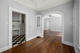 Lisa ThompsonDownstairs unit with hardwood floors, Formal dining room with arched doorway and corner shelving. Walking distance to the Menil 1 mile from Rice, St Thomas and lots of restaurants and bars. Off street parking