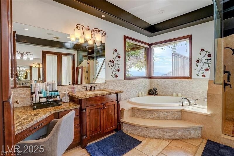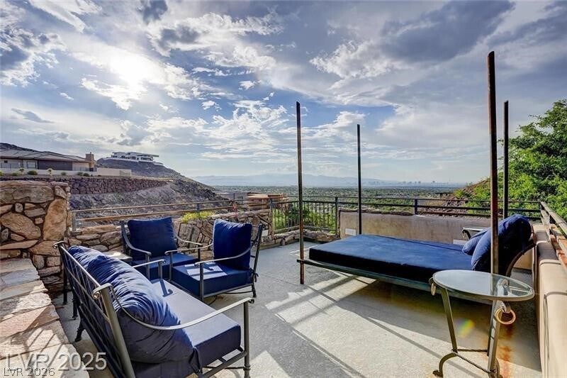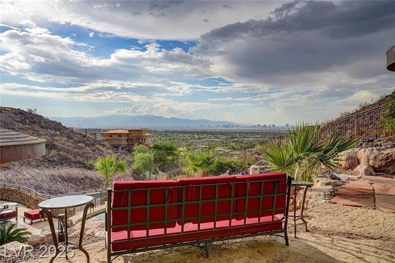 Perched high atop Liege Dr. in the premier MacDonald Highlands community, this custom estate spans 2.1 acres and captures stunning panoramic views of the Las Vegas Strip, city lights, and surrounding mountains. Showcasing striking architecture with natural stone, distressed wood, and grand floor-to-ceiling windows, this home offers multiple levels of outdoor entertaining with a resort-style pool and spa, outdoor kitchen, fire pit, putting green, and expansive terraces. Interior highlights include a gym with steam and sauna, theater, game room, and a two-story owner’s closet. The oversized garage easily accommodates an RV, 6+ vehicles, and a workshop. Nestled behind a second guard gate, this residence combines privacy, sophistication, and unparalleled views — luxury living at its finest.