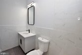 Discover a brand-new designer townhouse in the heart of Old Kensington, just minutes from Fishtown and Northern Liberties. This 3-bedroom, 3-bath home delivers modern city living with a finished basement and a show-stopping roof deck made for entertaining. Inside, you’ll find elevated finishes throughout, including white oak flooring, sleek Fenix matte cabinetry in the kitchen and baths, and striking marble countertops with a matching backsplash. The bathrooms are thoughtfully designed with light porcelain tile walls, dark contrasting floors, tiled niches, and custom quartz-topped vanities. The second floor features a private bedroom, full hall bath, and in-unit laundry for everyday convenience. The third floor is a true retreat, offering a spacious bedroom with a walk-in closet and a spa-style shower. Just steps away, a wet bar opens to the roof deck—perfect for hosting, relaxing, or enjoying skyline views. The fully finished basement adds versatility and can function as a third bedroom, home office, or recreation space, complete with a full bathroom and shower. Pets considered on a case-by-case basis. Water included. Tenant responsible for remaining utilities.