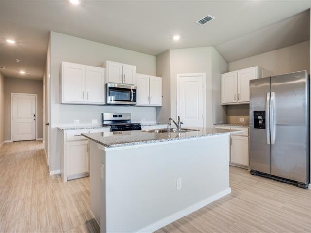 **Move in for less! 50% off the normal 1 month security deposit.** Be the first to live in this beautiful new single-story 4 bedroom home. Enjoy moving into a spotless home with brand-new flooring, paint, and fixtures—no wear and tear from previous tenants because everything is new! No need to shop internet carriers or wait for installation; internet is already provided and ready to go the day you move in. That's one less monthly bill to budget for. Even better, it’s equipped with smart home features for remote access & control – adjust lights, thermostat, and locks from your phone whether you’re at home, work, or traveling. The open-concept kitchen faces the breakfast nook and living room and overlooks the backyard. Kitchen has granite countertops and stainless steel appliances including a gas range! Large island and corner pantry—perfect for cooking and entertaining. The split-bedroom layout provides privacy, with 3 bedrooms at the front and a spacious primary suite at the back. The primary includes ensuite bathroom with an oversized step-in shower and large walk-in closet. Brand-new washer, dryer, and refrigerator included. Energy-efficient tankless water heater. Covered backyard patio creates an inviting space for BBQs, gatherings, or relaxed evenings with friends and family. Located in subdivision of Hickory Grove, a master-planned community. Highly rated Krum ISD. Location provides easy access to I-35, universities, hospitals, and shopping. Planned amenities to come include community pools and multiple playgrounds, making this a great place to relax and connect. Lovely home combines comfort, convenience, and community—ready for move in today!