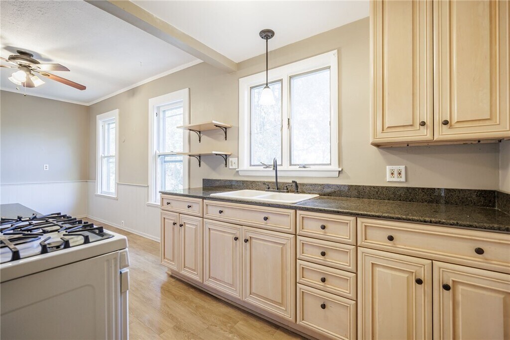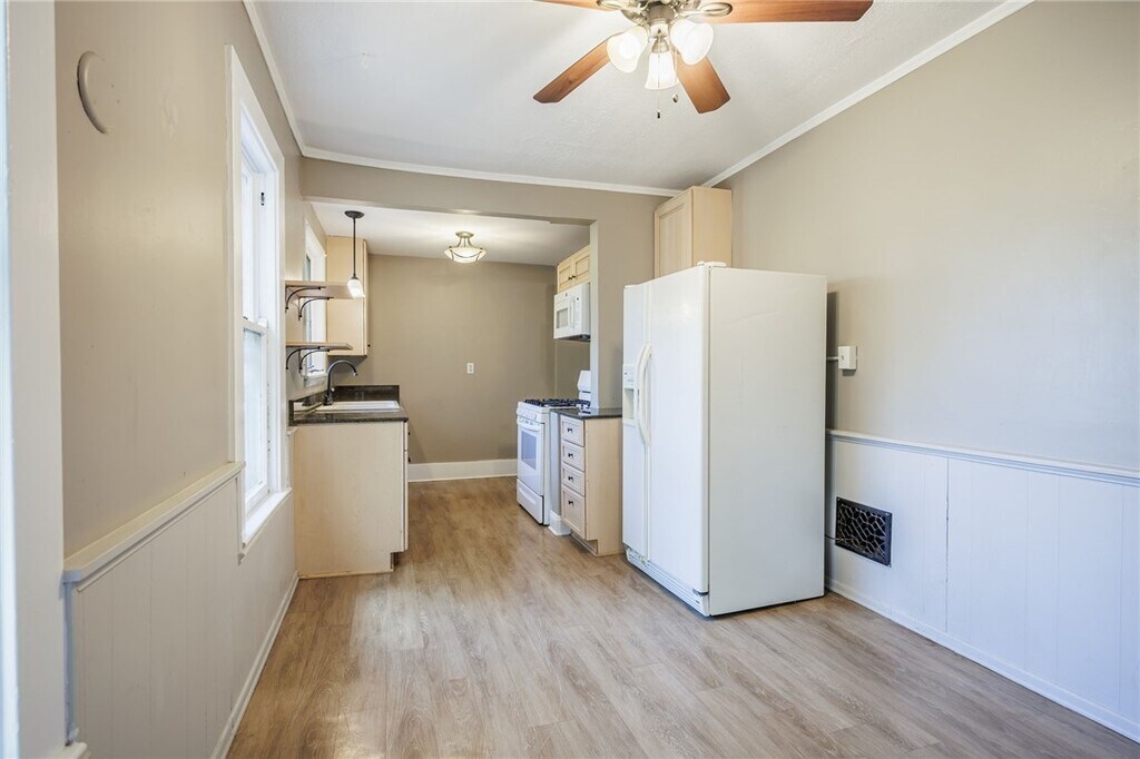 Spanning approximately 1,225 square feet,this spacious 2nd floor 2-bedroom apartment with an optional 3rd bedroom offers a flexible layout ideal for a variety of living arrangements. The home features a large galley style kitchen/dining room with custom cabinetry,granite countertops,and a gas range,providing both style and functionality. A centrally located Jack and Jill bathroom includes a tastefully updated and tiled tub/shower combo. Enjoy the additional perks of free basement laundry and storage unit,two dedicated parking spaces (including one garage spot),and a large fenced in backyard perfect for outdoor relaxation or entertaining. All utilities are included in rent to make budgeting simple for new residents. This property has a no pet policy. Applicants must have a minimum credit score of 650 to quality,or co-signer with the minimum score,plus 2.5x times the monthly rental amount. Security deposit equal to first month’s rent,and 1st month’s rent to move in. The apartment is available for immediate occupancy.