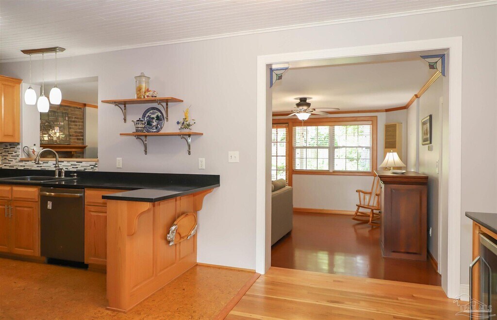 $250 off first month's rent. Discover the perfect blend of classic character and modern upgrades in this spacious midcentury brick home located in Pensacola’s sought-after North Hill Historic District. Offering four bedrooms and two and a half baths,this residence has been carefully maintained and features original hardwood flooring,detailed crown molding,and beautifully refreshed kitchen and bath spaces. The kitchen is a cook’s dream with soapstone counters,cork flooring,a walk-in pantry,updated appliances,and a bar area with dual beverage refrigerators,including one designed for wine. The main bath showcases a sleek walk-in shower,while two separate living rooms each boast a cozy fireplace for added warmth and charm. Large windows brighten the dining room,and both front and rear enclosed porches create inviting spaces to enjoy the seasons. Outdoors,the private backyard retreat is complete with brick pavers and mature landscaping. Additional highlights include two sunrooms,a workshop,and storm shutters. Recent upgrades include a shingle roof (2016),flat roof (2020),and HVAC system (2021). Only minutes from downtown Pensacola’s entertainment,festivals,and cultural attractions,this home is the ideal mix of historic elegance and modern convenience. At Rob Brooks Realty,we strive to provide an experience that is cost-effective and convenient. That's why we provide a Resident Benefits Package (RBP) to address common headaches for our residents. Our program handles insurance,identity protection,pest control,air filter changes,utility set up,credit building,rent rewards,and more at a rate of $39.95/month,added to every property as a required program. More details upon application. Total monthly payment (Rent + $39.95).