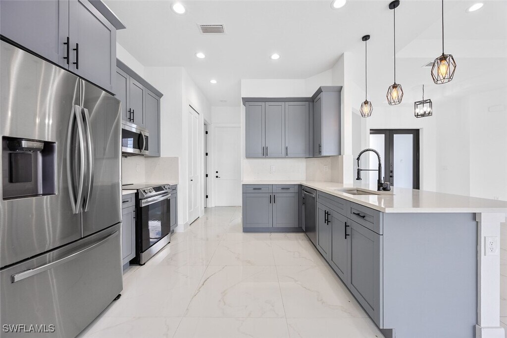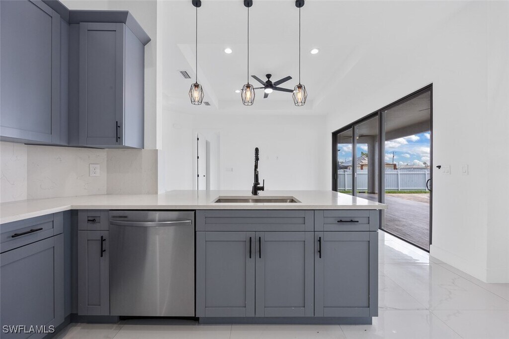 Experience Florida living in this beautiful custom pool home available for annual rental in Cape Coral. This property offers three bedrooms plus a den,featuring hurricane impact windows and doors,42-inch soft-close cabinetry,quartz countertops,stainless steel appliances,and 32-by-32 porcelain tile throughout. The owner’s suite includes a frameless glass shower with rainfall showerhead,soaking tub,walk-in closet,and direct access to the pool area. The gourmet kitchen provides ample counter space,pendant lighting,and a spacious pantry. Enjoy a private outdoor oasis with a 14-by-30 pool,large covered lanai,and fully fenced backyard. Additional features include an oversized two-car garage with epoxy flooring and a fenced yard. Located near Publix,Walmart,dining,medical offices,shopping,and parks,this home offers both convenience and comfort. Situated in Zone X with city water and irrigation assessments paid,this rental provides peace of mind in a prime location.