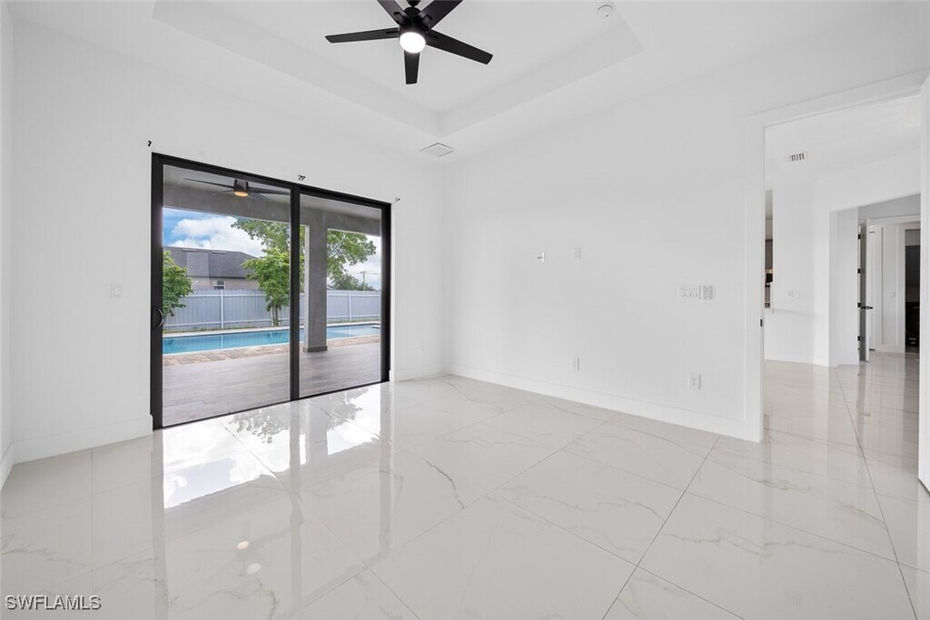 Steven TorresExperience Florida living in this beautiful custom pool home available for annual rental in Cape Coral. This property offers three bedrooms plus a den, featuring hurricane impact windows and doors, 42-inch soft-close cabinetry, quartz countertops, stainless steel appliances, and 32-by-32 porcelain tile throughout. The owner s suite includes a frameless glass shower with rainfall showerhead, soaking tub, walk-in closet, and direct access to the pool area. The gourmet kitchen provides ample counter space, pendant lighting, and a spacious pantry.Enjoy a private outdoor oasis with a 14-by-30 pool, large covered lanai, and fully fenced backyard. Additional features include an oversized two-car garage with epoxy flooring and a fenced yard. Located near Publix, Walmart, dining, medical offices, shopping, and parks, this home offers both convenience and comfort. Situated in Zone X with city water and irrigation assessments paid, this rental provides peace of mind in a prime location.