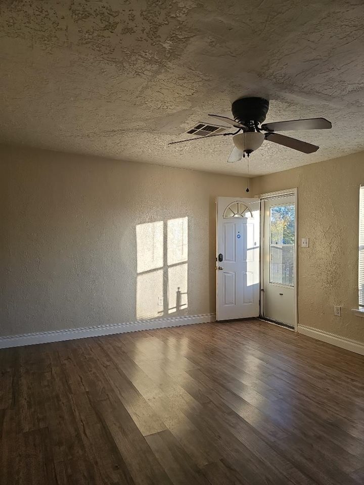 Embrace the allure of this gorgeous 4-bedroom 1-bath home with a textured rockexterior design that gives the house a classic natural look. , Enter a home with lovely wooden floors, creamy white walls, and abundant natural light creating a warm and inviting atmosphere and gather friends and family around the fireplace for chilly nights. The kitchen is well-equipped with plenty of wooden cabinets and counter space to meet your cooking needs. The bedrooms are cozy and come with ample closet space, ensuring you
