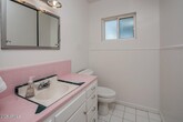 Charming mid-century home on a sprawling corner lot! Beautifully updated kitchen with stainless steel appliances,butcher block counters,backsplash! Huge garage--one side is oversized--with a 100 amp electrical panel! Adorable bathrooms with the original mid-century colors! Plantations shutters throughout home! Huge,private backyard! Hurry to this one!