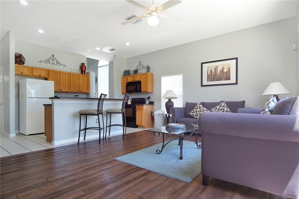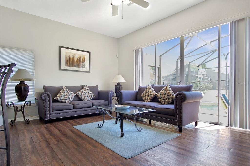 Welcome to this beautiful two-story home located in a gated community in Davenport,FL. Offering 5 bedrooms and 3.5 bathrooms,this spacious single-family residence provides plenty of room for comfortable living and everyday enjoyment. Upon entering,you’ll find a welcoming dining and living room combination,ideal for gatherings and shared meals. The kitchen features generous counter space and ample cabinetry,and it opens to a bright living area with sliding doors that lead to the backyard. Step outside to a private screened-in pool area,creating the perfect setting for relaxation or entertaining. The first-floor primary bedroom includes an ensuite bathroom with dual sinks,a separate shower,a soaking tub,and a private water closet. Upstairs,additional bedrooms are located,including a second primary bedroom and easy access to a laundry closet. The upstairs bathrooms feature shower-tub combinations for added convenience. The garage includes pool tables for indoor recreation,and community amenities include tennis courts for residents’ enjoyment. This fully furnished home includes basic cable,internet,pool maintenance,and lawn care,providing a convenient and low-maintenance lifestyle. Located near shopping,dining,and major highways,this home combines comfort and accessibility. Schedule your showing today and experience all this property has. MLS# S5136762