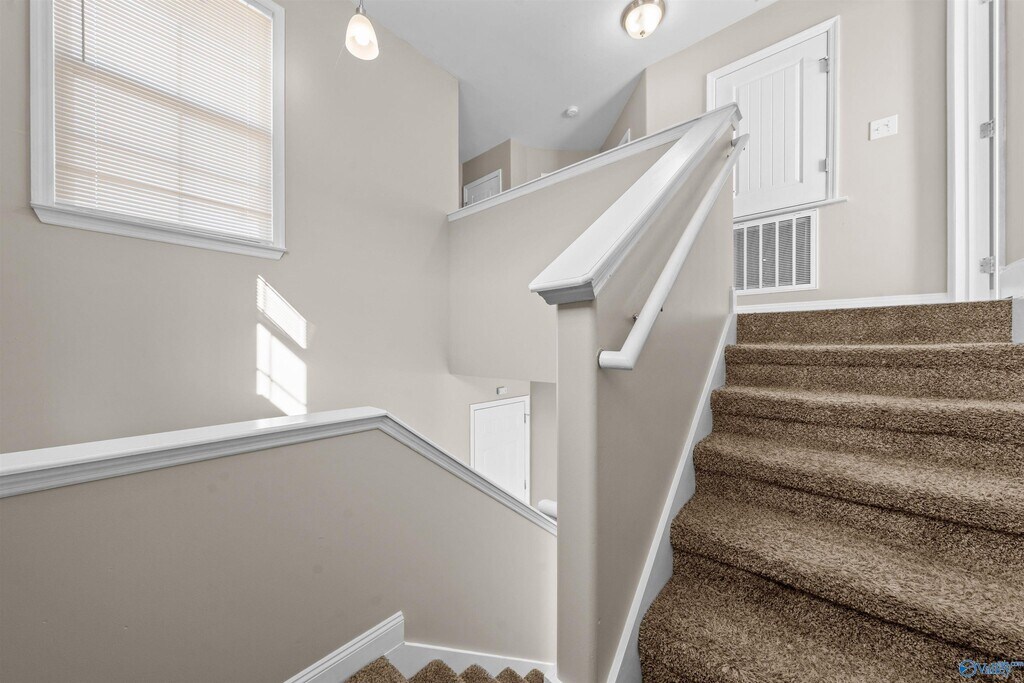 Great community near Redstone Arsenal Gate 7 and Toyota Field,Home of the Trash Pandas. Spacious living room with laminate flooring and ceiling fan; Kitchen has granite counters,refrigerator,and separate dining area overlooking backyard. Large primary suite with ceiling fan and laminate flooring,and ensuite has dual sinks,granite counters and shower over tub. All bedrooms are upstairs. Nearby boat ramp and pier,pond and playground. Close to shopping and restaurants! Pets considered.