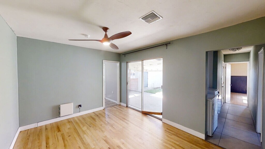 .5 Located in Calimesa, this three-bedroom, two-bath home combines practical comfort with outdoor appeal. The interior features wood floors, ceiling fans, central HVAC and washer/dryer hookups, plus added storage for convenience. The kitchen is equipped with a refrigerator, dishwasher and garbage disposal. Step outside to a fenced, grass backyard with a garden area, auto sprinklers and a covered patio for year-round use. A detached two-car garage provides parking and additional space. This property offers a straightforward, well-maintained layout in a residential setting. Gardener included in lease. 12 month lease. Cats and small dogs allowed upon approval.