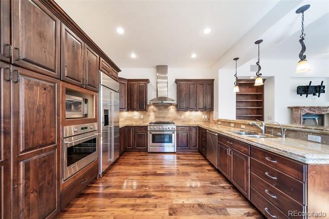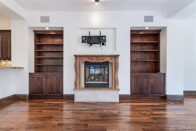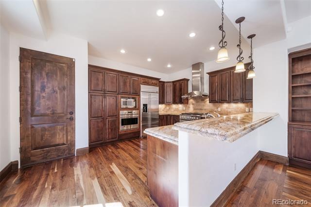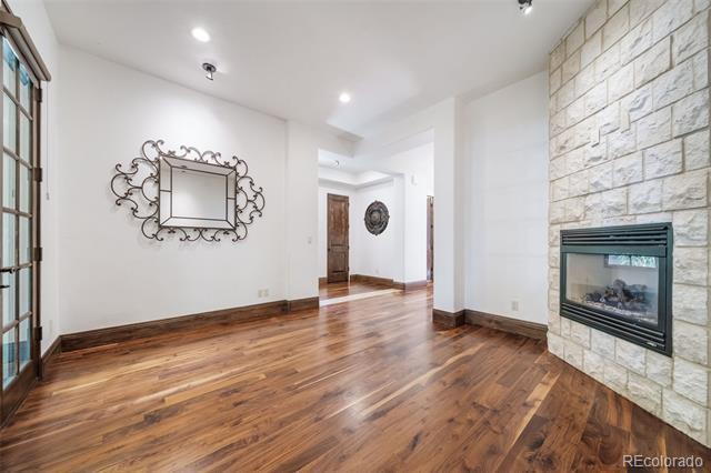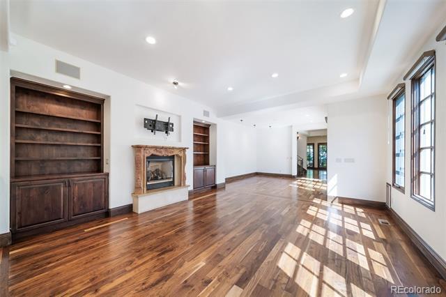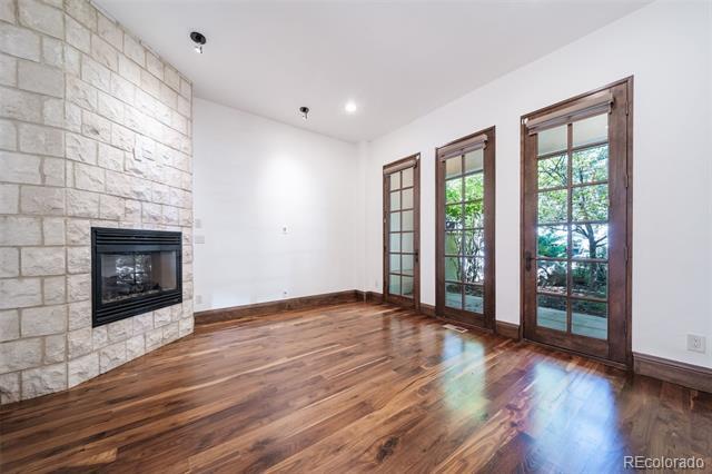 Four-story duplex with stunning interior: spiral staircase, hardwood floors, large updated kitchen with lots of cabinet space. Elegant master suite is very spacious with see-through fireplace, his & hers closets, and 5 piece bath with jetted tub, and double vanity. 2 more bedrooms with a jack and jill bath round out the second level, 3 bedrooms on the upper level is very rare for Cherry Creek townhomes! Finished basement with 4th bedroom with attached 3/4 bath, home theater room and extra living area with wet bar. Outdoor space includes: balconies, fenced backyard, rooftop terrace with wet bar. Three-car attached garage with extra storage. Townhouse MLS# 2616809