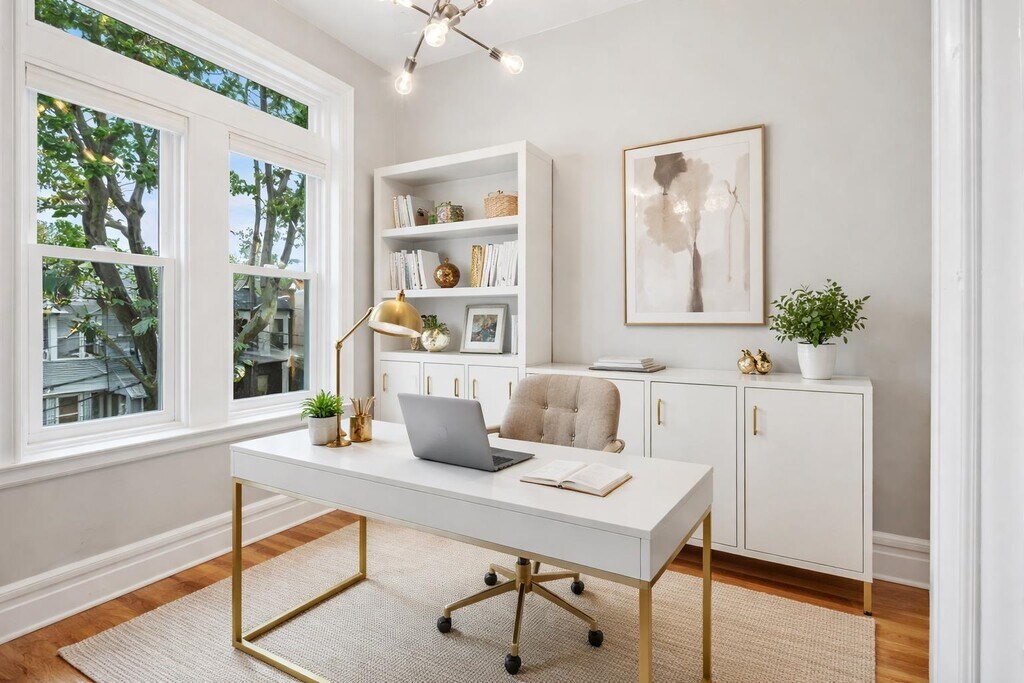Enjoy quiet, tree lined living on Nesbit Street, one of Weehawken's coveted quiet urban cul de sacs. Located in a gorgeous brick home, this sprawling, newly renovated second floor apartment offers two large bedrooms, a third bedroom/living space, a separate office space/exercise room, a full bathroom & a dedicated laundry room. Original details accentuated by soaring ceilings include plaster crown molding, rosette glass transoms, original ceiling medallions & built-in storage. These historic details blend tastefully with new central heating and cooling, hardwood flooring, recessed lighting and an open kitchen featuring a four seat island, quartz countertops, stainless steel appliances (including a double oven & built-in wine fridge) and a restored brick accent wall with floating reclaimed-wood shelving. The convenient location makes street parking effortless and accessing all major highways a breeze. Weehawken's main business district is just 2 short blocks away and commute time to NYC's Port Authority Terminal is only 20 minutes, door to door.
