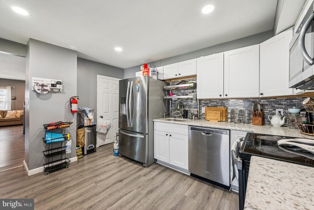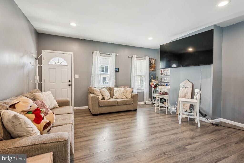 Lovely, well maintained 3-story twin home with 4 bedrooms, 2 full baths and unfinished basement. Features include: laminate floors; living and dining rooms; kitchen with stainless steel appliances and recessed lights; Large bedroom on the first floor; first floor full bath with shower; 2nd floor with 2 bedrooms and large bathroom with 2 sinks, tub, shower and recessed lights; 3rd floor has 4th bedroom. Side door leading to side yard with garage and parking for multiple cars; front wrap porch; central air. Unfinished basement has washer and dryer hookup and storage. The solar panels help save on your electric bill. Also for sale.