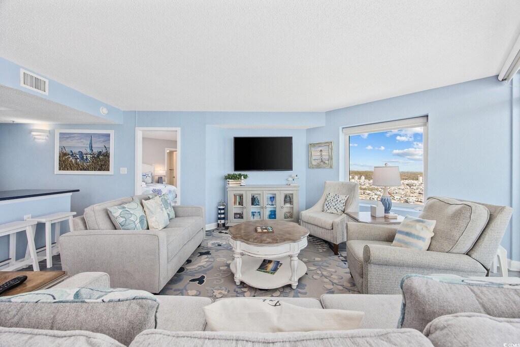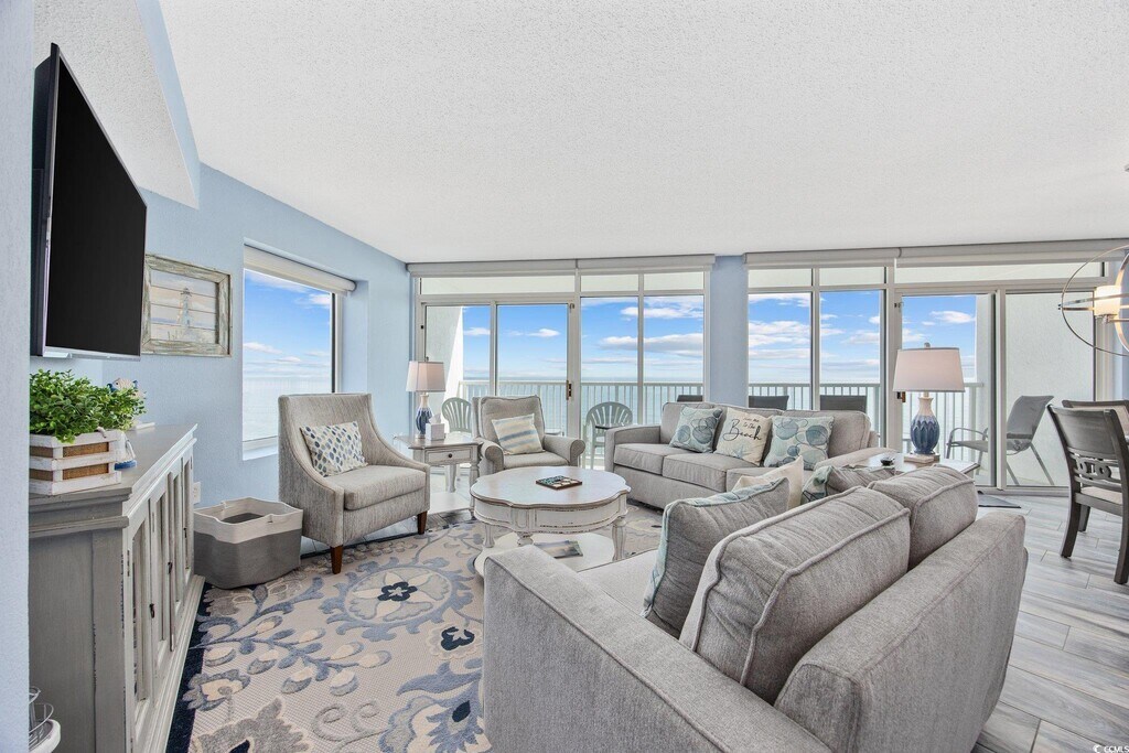 Monthly rental available Month-Month from October - February. This is a furnished rental and is ready for guests. We’re offering a special monthly rate of 3,000 for stays between October and February. Discover your new favorite vacation destination with this coastal chic,luxurious oceanfront condo located within the Sea Watch Resort. If relaxation is what you are looking for,dive into your choice of beach-side outdoor and indoor hot tubs or grab a tube and drift away into tranquility in one of two 225’ lazy rivers.