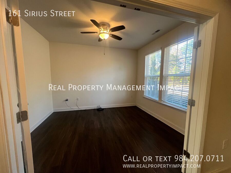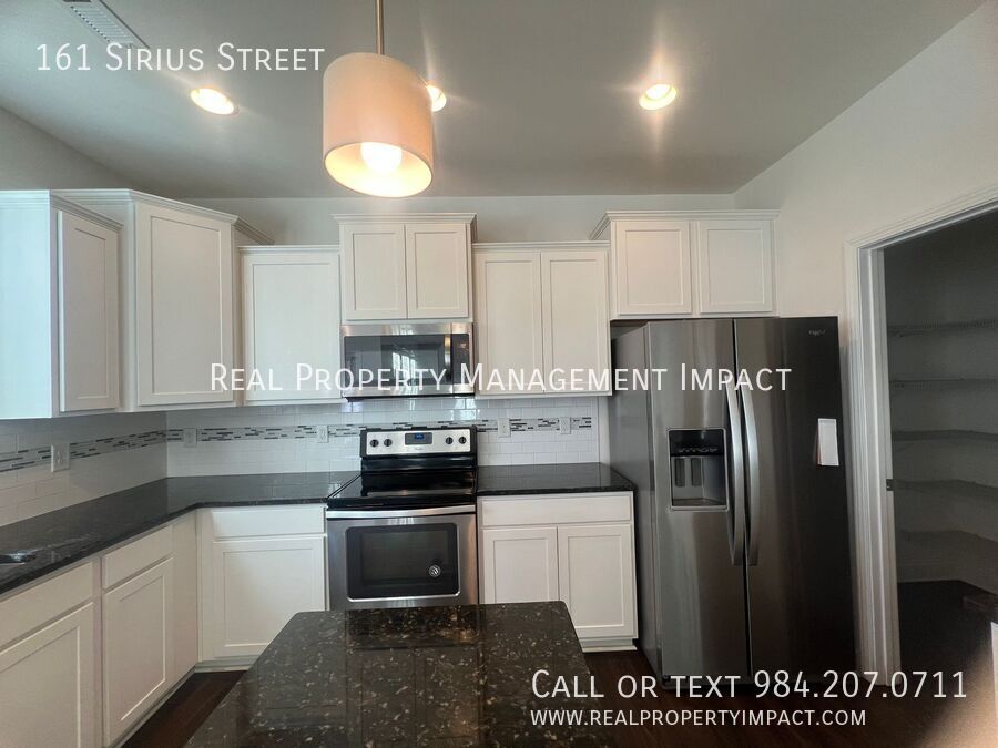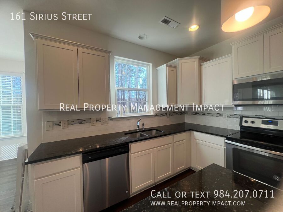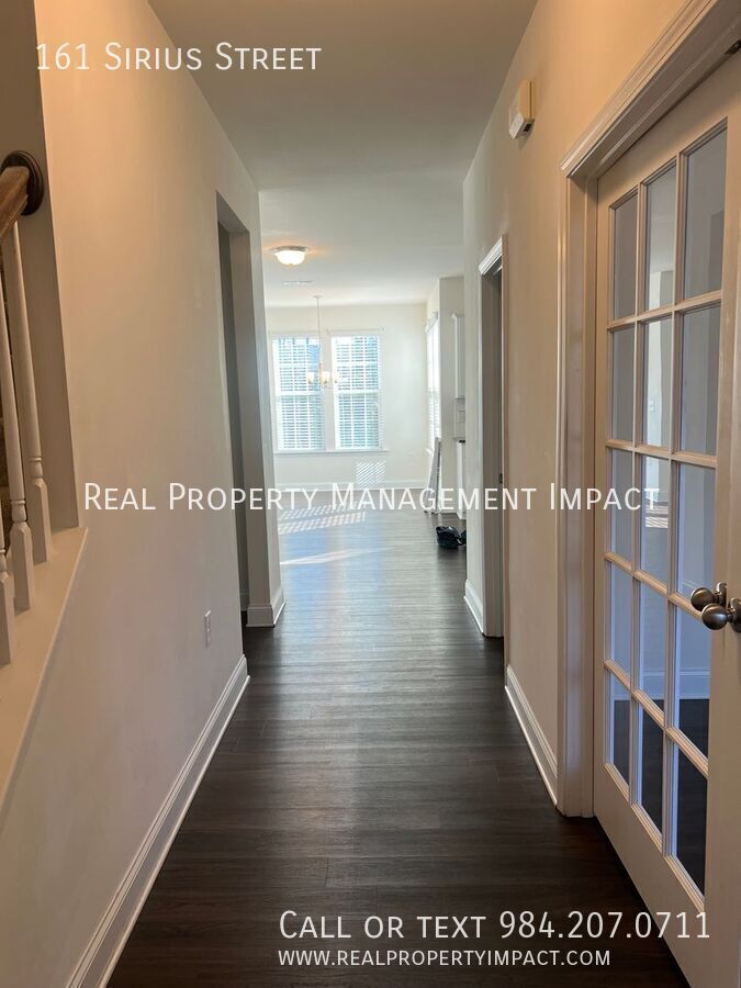 Welcome to your private oasis! This stunning 3-bedroom, 2.5-bath home offers the perfect balance of modern luxury and peaceful living, with a serene parkland as you approach to your new home. Step inside to discover a thoughtfully designed floor plan that begins with a versatile office or flex space, with French doors. The main level showcases wood-style flooring and recessed lighting throughout, leading to an impressive open-concept living area. The great room's wall of windows floods the space with natural light, creating an inviting atmosphere for both relaxation and entertainment. The chef kitchen features crisp white shaker cabinets beautifully contrasted with black granite countertops. A generous entertaining island with pendant lighting serves as both a functional workspace and casual dining spot. Modern amenities abound, including a stylish backsplash, separate pantry, and high-end stainless-steel appliances. The adjacent eat-in nook opens to a private grilling patio and backyard, perfect for indoor-outdoor living. A powder room with a classic pedestal sink completes the first floor. Upstairs, a versatile loft space awaits your vision - whether as a cozy family movie room, invigorating home gym, or cheerful playroom. The primary suite offers a retreat with a separate shower, double vanity, and walk-in closet. Two additional generous bedrooms share a well-appointed hallway bath, while the convenient second-floor laundry adds to the home's practical amenities. A two-car garage provides ample parking and storage, while access to the community pool offers the perfect summer escape. Despite its private setting, this home maintains excellent connectivity - just 18 miles to downtown Raleigh, 14.9 miles to Fuquay Varina, and 8.4 miles to Clayton, with easy access to I-40. Application Criteria • Credit Score – Min 600 (soft pull) • Income (monthly) –3X Monthly Rent • Everyone over 18 must apply ($55 application fee applies to all applicants) • No Evictions • Criminal Background Screened • If pets are allowed – separate pet screening is required. • All information provided on the application is screened and verified. • Approval timeline varies based on the verification process. Average = 48 hours. AVOID RENTAL SCAMS: Real Property Management Impact is a licensed Real Estate Agency that exclusively markets and represents this listing. We do not advertise on Craigslist or Personal FB Pages. We would never ask you to wire money, request funds through a payment app for initial rent, deposits, or take the key after your showing to move-in. Community Pool
