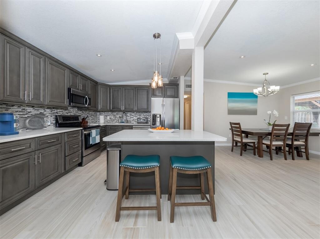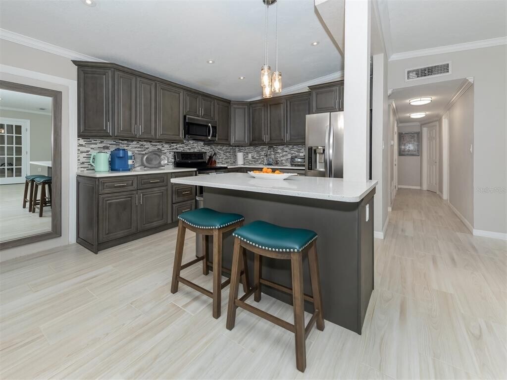 Beautifully furnished,spacious 3 bedroom 2 bath vacation home in the heart of Sarasota. Sunaire Terrace is a wonderful location offering close proximity to Downtown Sarasota,dining,nightlife,shopping,museums,arts and theatre. St Armand’s Circle is a short drive over the John Ringling Causeway,which is a crown jewel in terms of elegant shopping,dining and entertainment. This 1,694 square foot home has a Great room,Family Room and is a split bedroom plan ensuring maximum privacy. The Great Room is open and spacious with a large flat screen TV,and has plush seating for your ultimate comfort. There is a Family Room for even more gathering and seating space. The Gourmet Kitchen is open and well appointed. Lots of workspace and cabinetry,quartz countertops and room for more than one cook! There is a beautiful quartz top island with seating in the Kitchen. Master Suite is oh so comfortable,which you will need after your long days of touring Sarasota destinations! The Master Suite has an en-suite bathroom and walk in shower. Bedrooms 2 and 3 are delightfully comfortable as well. Furnishings and overall colors are very pleasing and so Florida! Beautiful tile flooring. There is a patio/deck off the Family allowing for outdoor seating and some serious BBQ’ing. The Deck/Patio overlooks a shady backyard that has privacy fencing. You’ll have everything with this beauty: Location,which is in the heart of one of the most popular cities in Florida,close proximity to Airports (Sarasota Bradenton and Tampa International),beaches,shopping,dining,arts and wonderful entertainment. All for your vacation pleasure! Current price point is for off season months,please call for all seasonal rates. MLS# N6123947