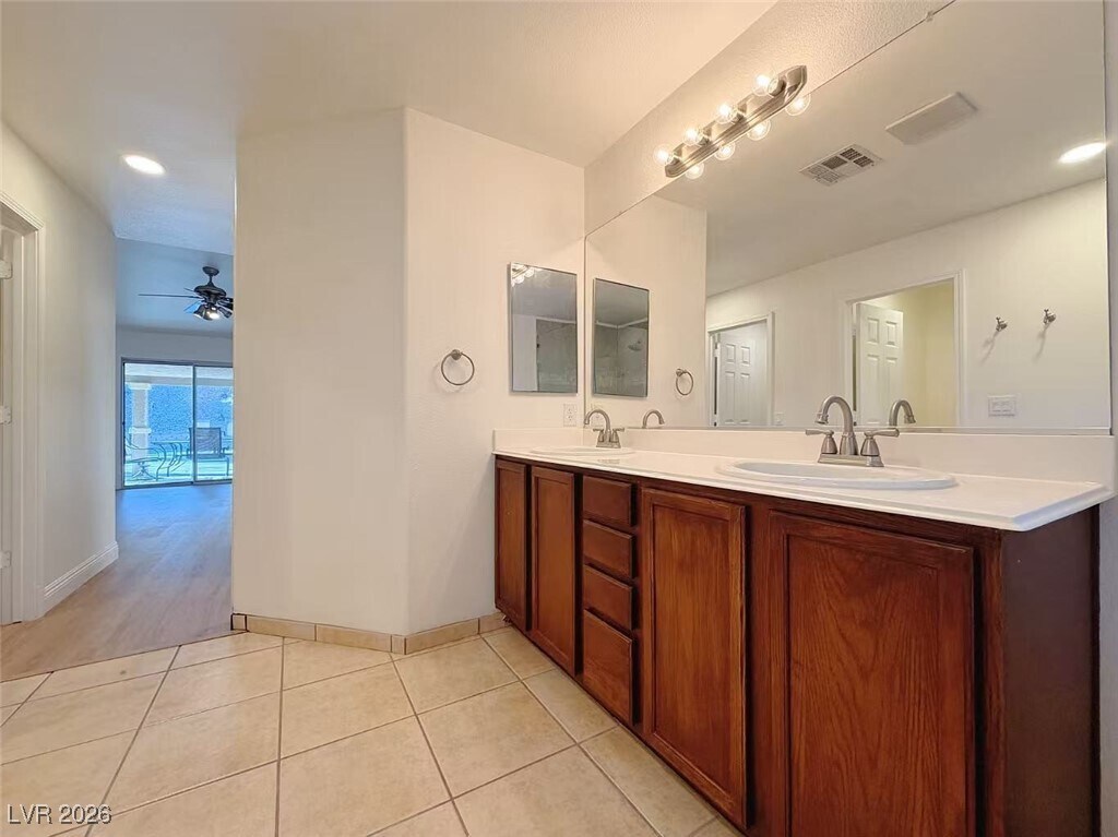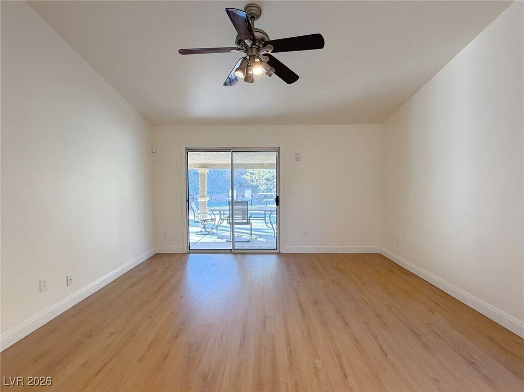 Stunning Single Story Home in the heart of Summerlin! This 3 bed, 2 bath home offers comfort, privacy, and a highly desirable location. The open concept floor plan features a large kitchen with stainless steel appliances, perfect for everyday living and entertaining. The spacious primary suite is thoughtfully separated from the other two bedrooms for added privacy and includes a sliding glass door with direct access to the backyard. Step outside to enjoy an oversized backyard surrounded by mature trees, creating a peaceful and private outdoor space to relax or host gatherings. Located within walking distance to Palo Verde High School and just minutes from Downtown Summerlin, parks, walking trails, Red Rock Casino, and easy access to the 215 freeway.The home also features solar panels to help reduce energy costs. Recent updates and more. Schedule a viewing today!