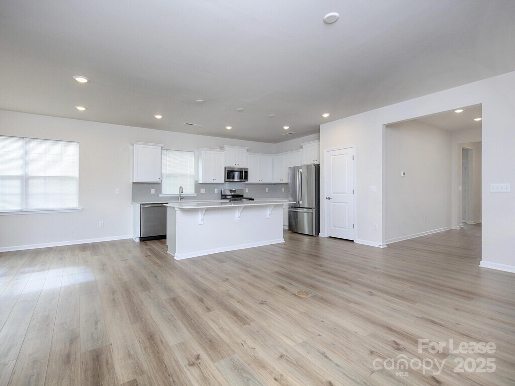 Spacious 3 bed/ 2 bath Ranch Home for Lease in Bell Farm. Open Kitchen Concept with Large Eat at Island,Tile Backsplash,Shaker Cabinets,Refrigerator Included,Hall closet and Attic storage above the Garage,Open to the living room. Pantry,covered back porch,2 car garage. Community picnic area and Pickleball Courts.