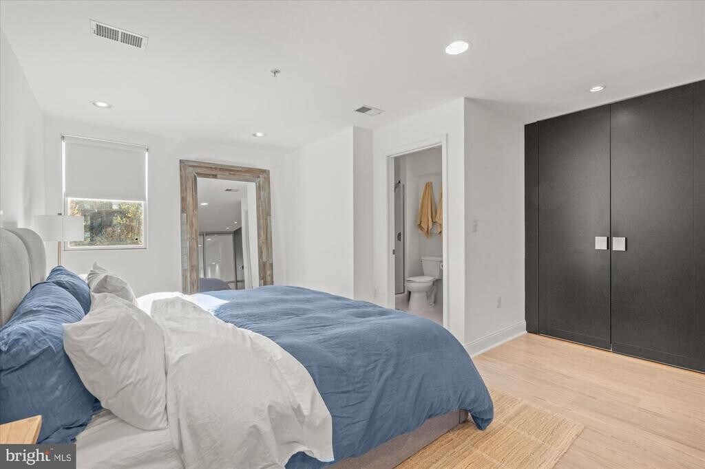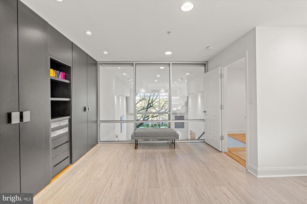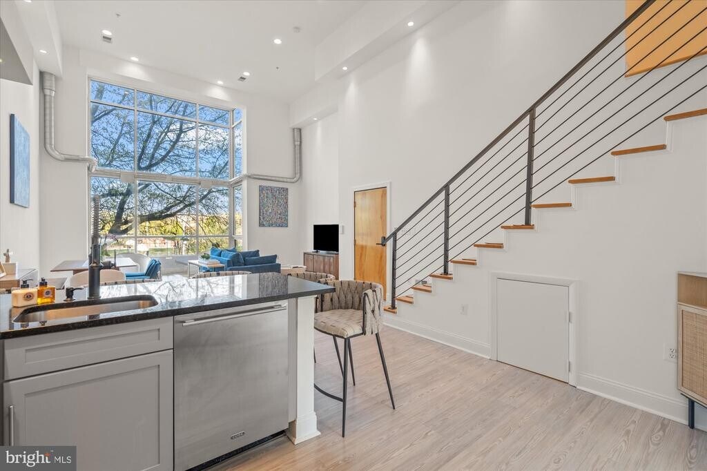 Welcome to an exceptional urban retreat with private parking in the heart of Logan Circle. Located in the sought-after St. John’s Wood building (2005), Unit 3B is a striking two-level loft-style residence that defines modern city living. Inside, soaring 20+ ft ceilings and a dramatic wall of glass flood the space with natural light, creating an open and airy feel. The open-concept layout seamlessly connects the living, dining, and kitchen areas—perfect for everyday living and entertaining. The updated kitchen features premium appliances, including Sub-Zero, Viking, and Cove, along with ample cabinetry and a walk-in pantry. The main level also includes a second bedroom, full bath, private balcony, and in-unit laundry. Upstairs, the lofted primary suite offers a refined retreat with custom closets, built-ins, and smart home features, including automated shades. This home includes two assigned parking spaces with private access and an EV charger. Building amenities include secure entry and a rooftop deck with panoramic city views. Enjoy the best of DC living just steps from the 14th Street corridor, Whole Foods, restaurants, coffee shops, parks, and Metro access.