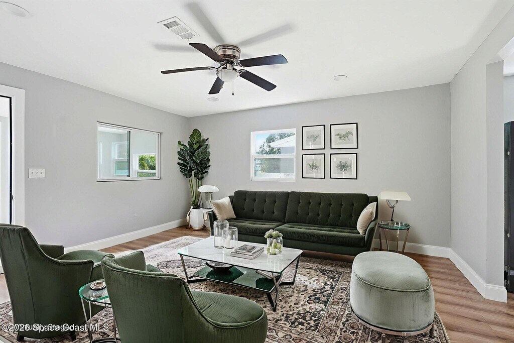 Brianne HeathThis 2 bedroom, 1 bathroom house in Titusville is simple, clean, and easy to live in. The inside has fresh paint and wood laminate floors throughout, so there's no carpet to deal with. In addition to the living room, there's an enclosed front porch and an enclosed back porch, which gives you extra room for things like working from home, hobbies, storage, or just spreading out a bit. The back porch also has washer and dryer hookups. The kitchen has very clean cabinets and appliances, and the backyard is fully fenced. There's also a shed for tools, bikes, or extra storage. If you're looking for a functional rental house in Titusville with extra usable space, this one checks a lot of boxes.