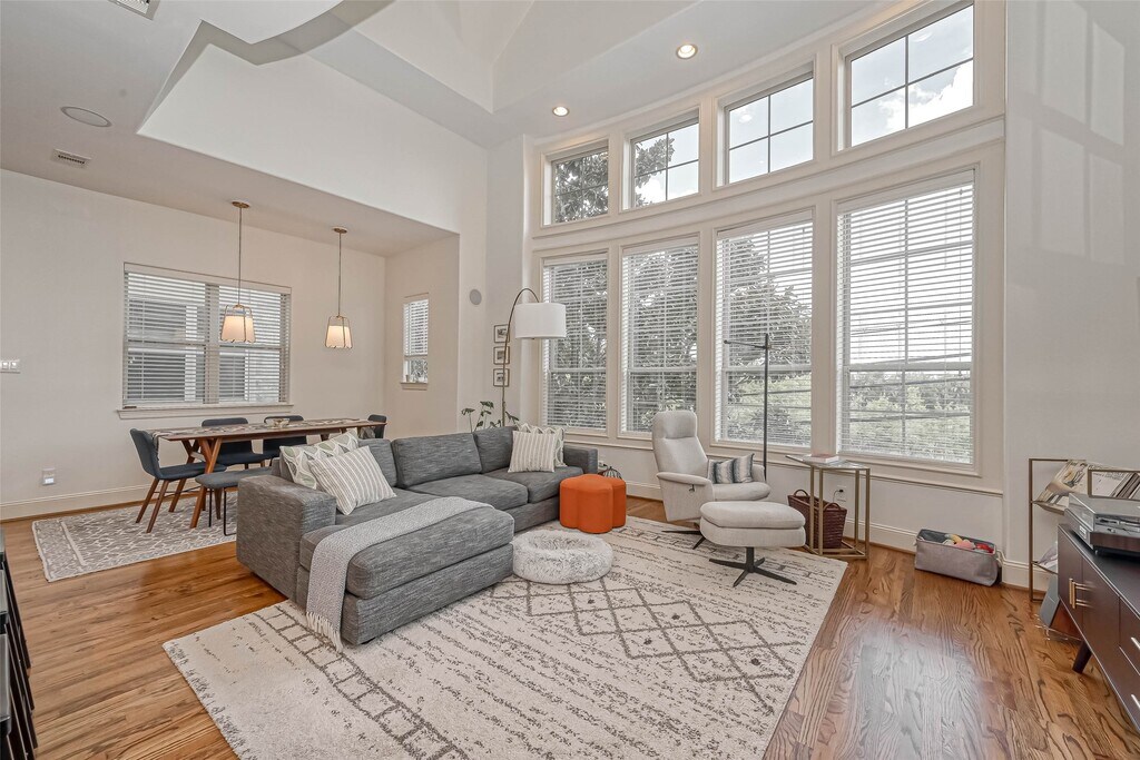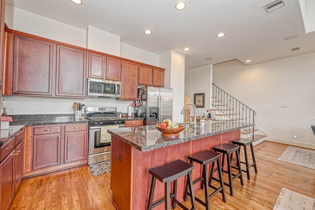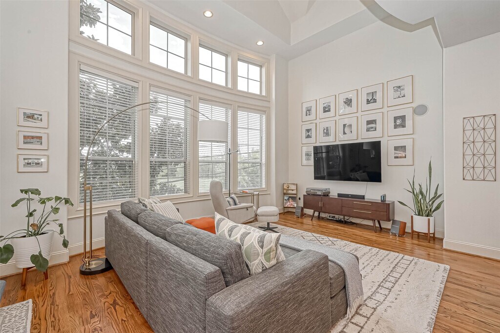 Experience urban living at its best in this beautifully maintained three-bedroom,three-bath townhome in the heart of EaDo. Behind the gated entry,a stone façade and lush landscaping create a private,inviting welcome. Inside,the first-floor bedroom with an ensuite bath offers flexibility as a home office or guest suite. The second floor opens into an airy living and dining area with dramatic ceilings,hardwood floors,and expansive windows that flood the space with natural light. The kitchen features granite countertops,stainless steel appliances,and a large island with a beverage refrigerator,making it ideal for gatherings. The third floor hosts a serene primary suite with a spacious bath,dual vanities,soaking tub,and walk-in closet,along with a secondary suite nearby. Minutes from Shell Energy Stadium,Discovery Green,and Daikin Park with convenient access to I-45 and US-59,this home blends urban energy with refined comfort in one of Houston’s most dynamic neighborhoods. MLS# 84167057