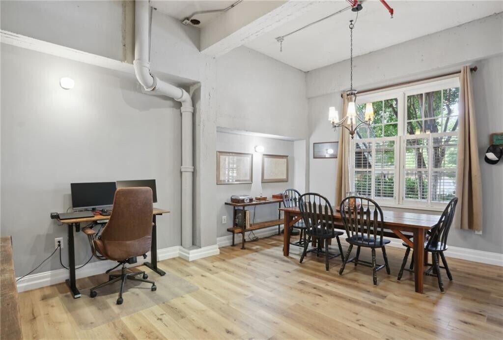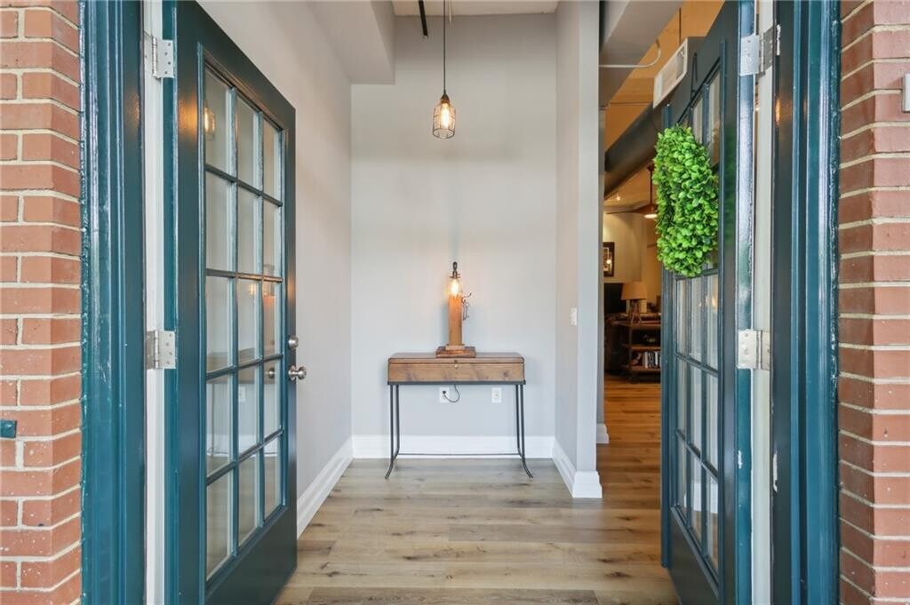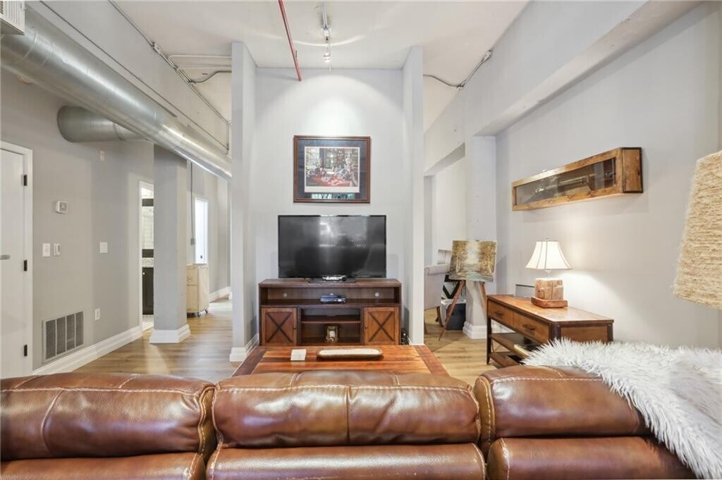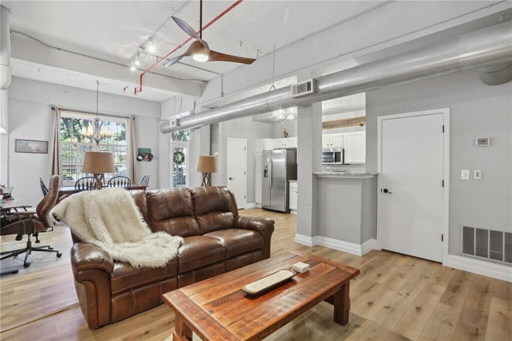 Welcome to this industrial-chic,single-level loft in the heart of Roswell,with features unlike anything you’ll find in a traditional condo. With ground-floor and corner-unit convenience,this haven blends modern finishes with historic neighborhood appeal. Step through the elegant French doors into a bright foyer with soaring 14’ ceilings,hardwood floors,and upgraded lighting that perfectly coordinates with the open-concept layout. The thoughtfully appointed kitchen shines with crisp white cabinetry,beautiful granite countertops,a classic subway tile backsplash,and sleek stainless steel appliances. Retreat to your spacious bedroom suite featuring a roomy walk-in closet with built-in shelving and a luxurious step-in tile shower,complete with a bench and toiletry nook. Resort-style amenities beckon within this gated community: enjoy the sparkling pool,stay active at the fitness center,or hit the tennis court. Explore the nearby Chattahoochee River National Recreation Area for hiking and paddling and the vibrant North Point Mall area for endless shopping,dining,and entertainment options. Industrial flair meets modern comfort at 1610 Liberty Lane—a rare opportunity to enjoy single-level loft living in a historic,amenity-rich Roswell enclave. Schedule your private viewing today! $43 application fee per person. Water included in rent. No smoking allowed. Pets allowed subject to approval and $500 non-refundable pet fee.