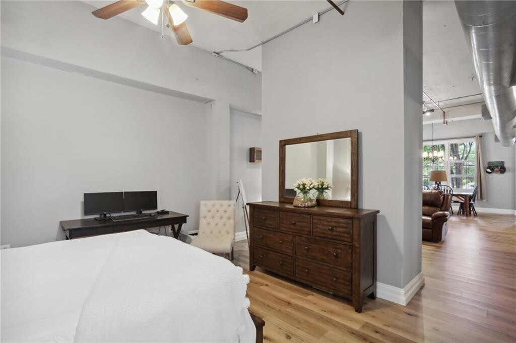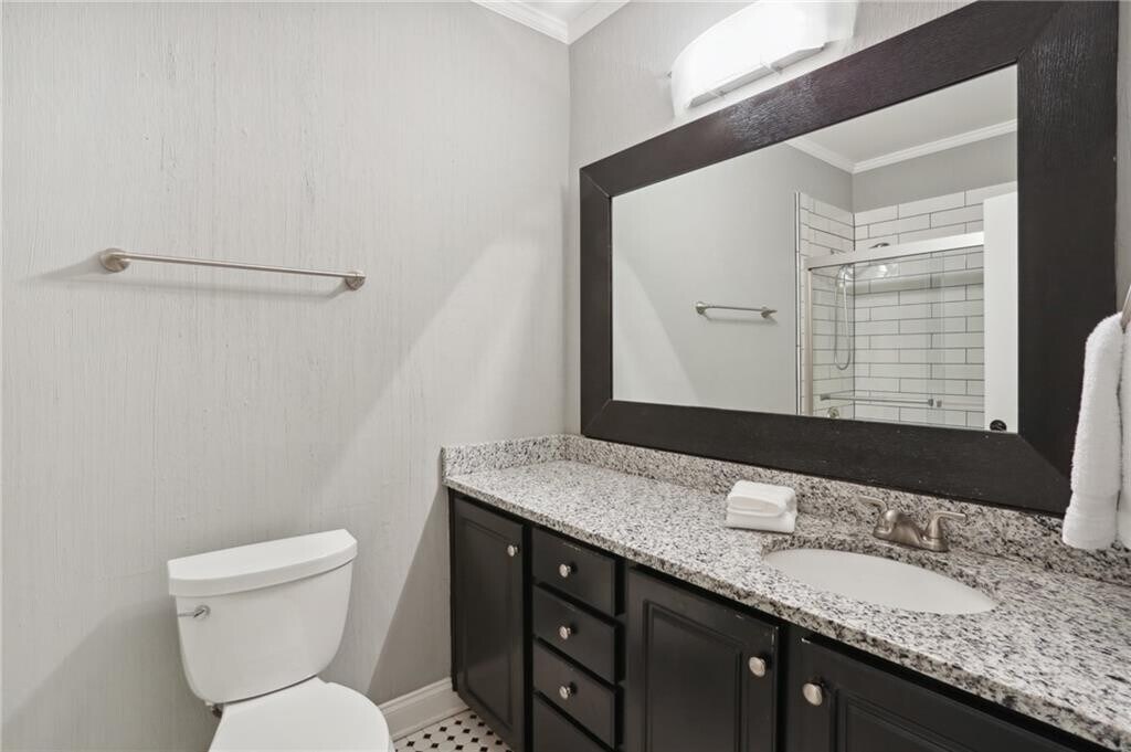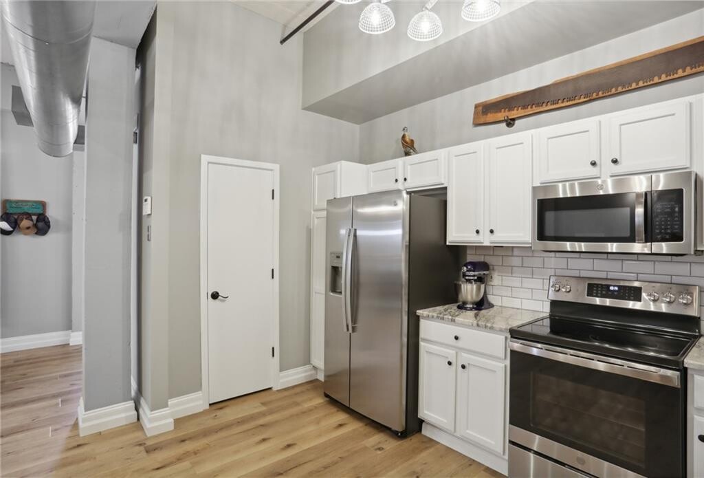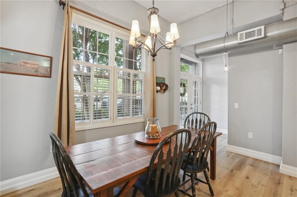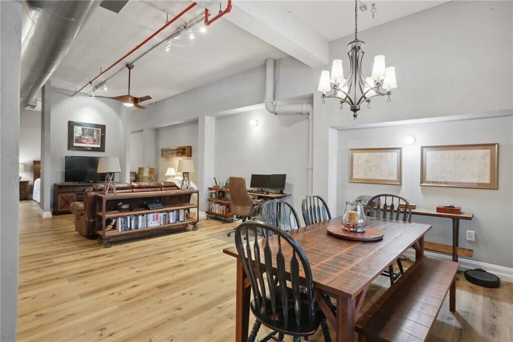 Welcome to this industrial-chic,single-level loft in the heart of Roswell,with features unlike anything you’ll find in a traditional condo. With ground-floor and corner-unit convenience,this haven blends modern finishes with historic neighborhood appeal. Step through the elegant French doors into a bright foyer with soaring 14’ ceilings,hardwood floors,and upgraded lighting that perfectly coordinates with the open-concept layout. The thoughtfully appointed kitchen shines with crisp white cabinetry,beautiful granite countertops,a classic subway tile backsplash,and sleek stainless steel appliances. Retreat to your spacious bedroom suite featuring a roomy walk-in closet with built-in shelving and a luxurious step-in tile shower,complete with a bench and toiletry nook. Resort-style amenities beckon within this gated community: enjoy the sparkling pool,stay active at the fitness center,or hit the tennis court. Explore the nearby Chattahoochee River National Recreation Area for hiking and paddling and the vibrant North Point Mall area for endless shopping,dining,and entertainment options. Industrial flair meets modern comfort at 1610 Liberty Lane—a rare opportunity to enjoy single-level loft living in a historic,amenity-rich Roswell enclave. Schedule your private viewing today! $43 application fee per person. Water included in rent. No smoking allowed. Pets allowed subject to approval and $500 non-refundable pet fee.