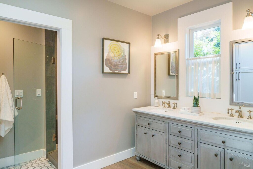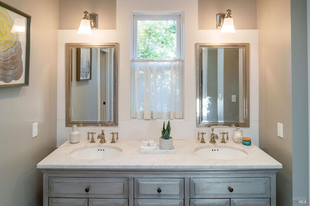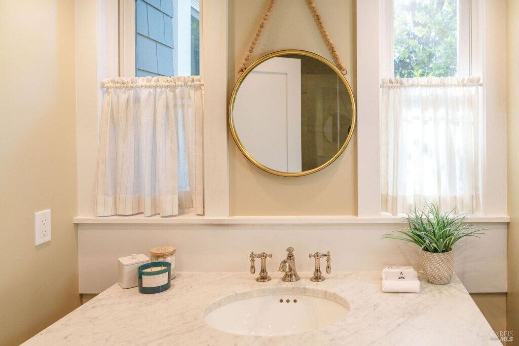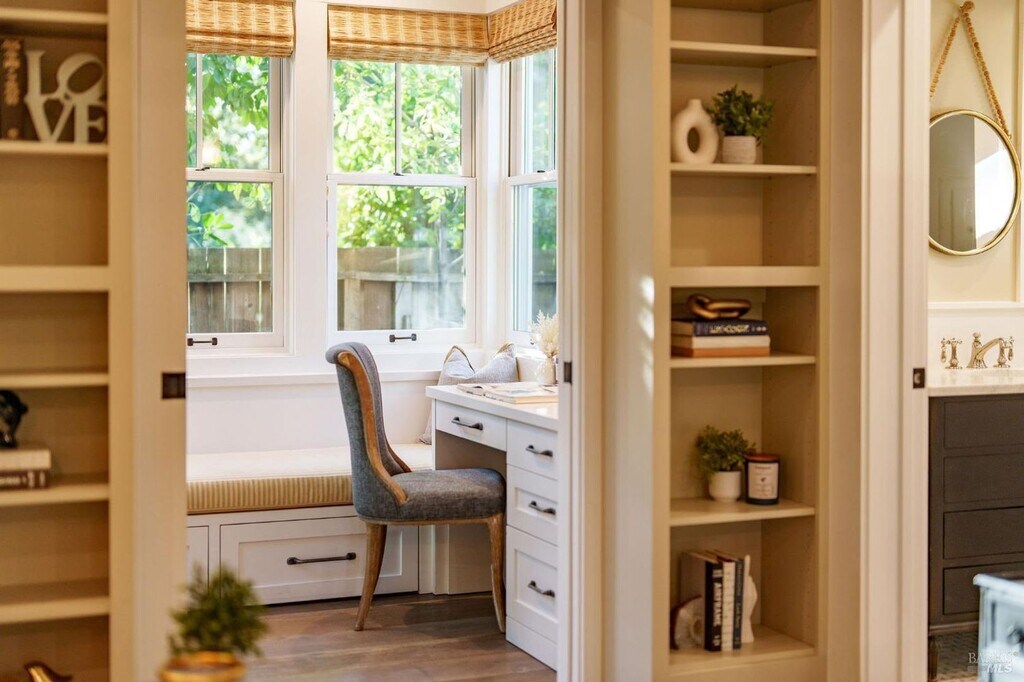 2 Bedroom 2 Bath Calistoga Oasis with Additional 1 Bedroom 1 Bath ADU Welcome to this 2 bedroom, 2 bath Calistoga oasis with an additional 1 bedroom, 1 bath ADU. Tucked away in the heart of Wine Country, this hideaway feels like a secret garden inviting, peaceful, and beautifully harmonious. The home blends timeless bungalow character with a modern touch throughout. The property showcases a wraparound porch, including an enclosed section that seamlessly blends indoor and outdoor living, perfect for enjoying a tranquil afternoon. As you enter through the front door, you are immediately welcomed by a spacious living room featuring solid flooring throughout. To your left, you will find a designated office nook that shares a Jack and Jill bathroom with the guest bedroom. Back in the living room, to your right, is another entrance to the enclosed porch, which has been converted into a year round sitting area featuring ceiling fans, a fireplace, and ample natural light. Moving back inside, you will find a dining area that flows easily into the kitchen. The kitchen features a large stone topped center island with seating and a sink, with the microwave conveniently tucked away on the side. It also offers luxury appliances, including a stove, dishwasher, a hidden refrigerator that blends seamlessly into the cabinetry, a Sub Zero wine fridge, and beautiful French doors that lead directly to the backyard. To the left of the kitchen is a charming laundry room with checkered tile flooring, its own sink, and a brand new washer and dryer. Continuing left, you will find the entrance to the primary bedroom, which features its own door leading out to the backyard, allowing nature to blend effortlessly into the bedroom design. The primary bathroom offers a double sink vanity centered in the space, a discreetly tucked away toilet to the left, a spacious walk in shower with a built in bench, and a generous walk in closet to the right. Step outside into the backyard and you are greeted by a beautifully landscaped garden with multiple sitting areas, including an outdoor fireplace and BBQ, perfect for the warmer months. The separate ADU includes a full bathroom, a hidden Murphy bed, and a kitchenette featuring a mini fridge, built in microwave, and sink. Designated driveway parking. A C and central heating. Landscaping included. One pet possible with approval. 12 month lease. (ST) -Central Heating and A.C. -12 Month Lease -1 Pet with Approval -Stove, Dishwasher, Refrigerator, Microwave ,Sub Zero Wine Fridge Provided -Brand New Washer and Dryer Provided -1 Bedroom 1 Bath ADU DRE # 02173601
