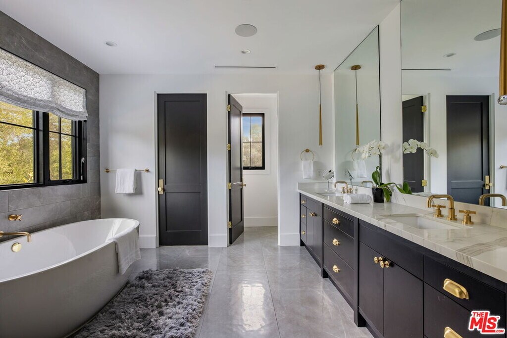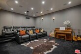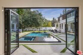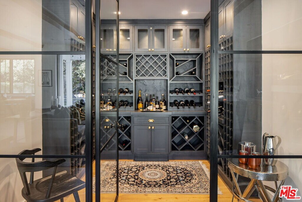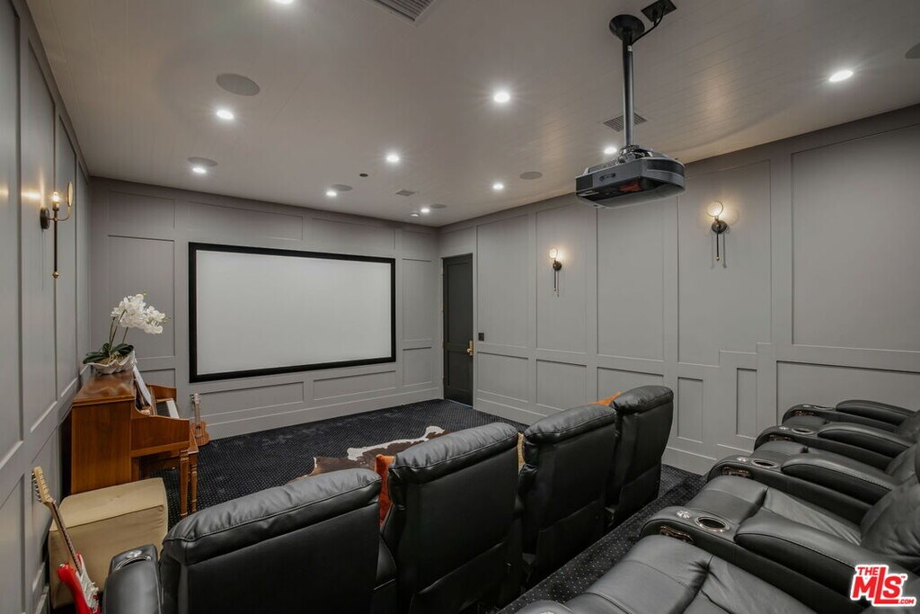 Set at the end of a quiet cul-de-sac on a coveted corner lot in Royal Oaks, this expansive newer-construction residence offers a rare combination of scale, privacy, and thoughtful design in one of Encino's most sought-after neighborhoods. From the moment you enter, the home feels open, elevated, and effortlessly livable. Soaring cathedral-height ceilings with exposed beams, oversized proportions, and abundant natural light define the main living spaces. Designed for both entertaining and everyday living, the two-level floor plan flows seamlessly from formal living and dining rooms into a generous great room with fireplace and sliding pocket glass doors that open to the backyard. The show-stopping chef's kitchen anchors the home with two substantial islands, a walk-in pantry, premium appliances, cozy eating area and ample space to gather with ease. Every living space feels intentionally oversized, including a dedicated home theater, library or study, private office, and a striking walk-in wine cellar. All five bedrooms are en suite, with three spacious secondary suites upstairseach offering walk-in closets and access to upper-level balconies. The primary suite is a true retreat, complete with a sitting room or office, a dramatic two-sided fireplace, and a spa-inspired bath finished in Carrera marble. Outdoors, the property transforms into a private, resort-style setting featuring an oversized turf lawn, expansive patio, fire pit, built-in BBQ, pool house, and a heated infinity-edge pool and spa ideal for year-round enjoyment. Additional highlights include dual-zone HVAC, security and alarm systems, and a three-car garage with glass doors. Ideally located within the Lanai Road Elementary School District and moments from studios, dining, shopping, canyon roads, and major freeways, this home delivers refined Encino living at an exceptional scale. MLS# 26666427