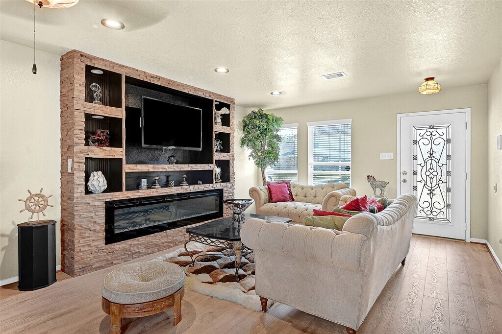 Stylish and spacious 3-bedroom,2.5-bath home with a game room and modern upgrades throughout! Step inside to an open-concept living area featuring a large modern electric fireplace and luxury vinyl plank flooring on the main level. The chef-inspired kitchen boasts quartz countertops,a large island,and sleek cabinetry,ideal for entertaining or family gatherings. Upstairs,enjoy a spacious game room perfect for movie nights or a home office setup,along with all bedrooms featuring soft carpeting for comfort. The in-house utility room adds convenience to everyday living. Located in a desirable community near major highways,schools,and shopping,this home combines modern style,comfort,and functionality — ready for you to move right in!. Schedule your showing today! MLS# 82929813
