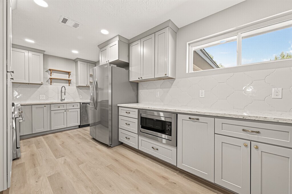Completely Remodeled & Move-In Ready! This stunning one-story brick home offers 4 bedrooms and 3 bathrooms in the highly sought-after Katy Heights neighborhood. Thoughtfully updated throughout,it features new energy-efficient windows,new flooring in every room,new cabinets,fresh interior paint,and beautifully remodeled bathrooms. The kitchen shines with Quartz countertops,fixtures,and modern appliances,while the open layout provides seamless flow and abundant natural light. Mock fireplace in living area. Additional highlights include a new roof,updated finishes,and a spacious double-wide driveway for convenient parking. Combining comfort,efficiency,and timeless design,this home is move-in ready and ideally located near Old Katy’s charming shops,restaurants,and Katy ISD schools. MLS# 27732591
