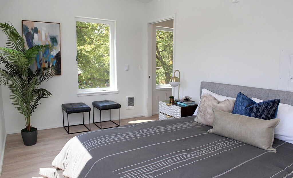 Be one of the first to live in this Boutique-style apartment at The Slocum, in the midst of one of Portland's hippest neighborhoods. Each unit has a unique, thoughtful, and design-forward floor plan that has an overall vibe of condo living. All located in the coveted Arbor Lodge Neighborhood with parks, food, entertainment, and transit at your fingertips! * 1 month FREE rent special * on approved credit with signed lease (12+ month terms)* Features include: • Secure building with gorgeous lobby and mail area • Well thought-out units with designer touches • Top floor unit with high ceilings • Many windows bring in tons of natural light • Spacious Main Living Room • Wood floors • Large open Kitchen with matching upscale appliances, including dishwasher, microwave, and glass flat top electric stove, solid surface counters with subway tile backsplash, and lots of cabinet/storage space • Gorgeous tiled step-in shower in spacious bathroom • Stacked washer/dyer in unit (Not under warranty for repair) • Direct access to bathroom from bedroom • Fantastic Arbor Lodge location, blocks to New Seasons, MAX train, walk/bike to Mississippi Ave & Killingsworth shopping, dining, food carts, venues, Peninsula Park Rose Garden, etc. Minutes to PCC campus, Adidas, and Downtown Portland. • Walk score 78, Bike score 99! **One month free on approved credit! Applied upon move-in w/ signed lease and required funds paid --Renter's Insurance Required-- *$100 Monthly utility surcharge includes Water/Sewer/Garbage and Hot H20 **Pets Negotiable with additional pet deposit ***Please note: This unit is not ADA compliant Pictures are of a similar neighboring staged unit Open Application Period: Now