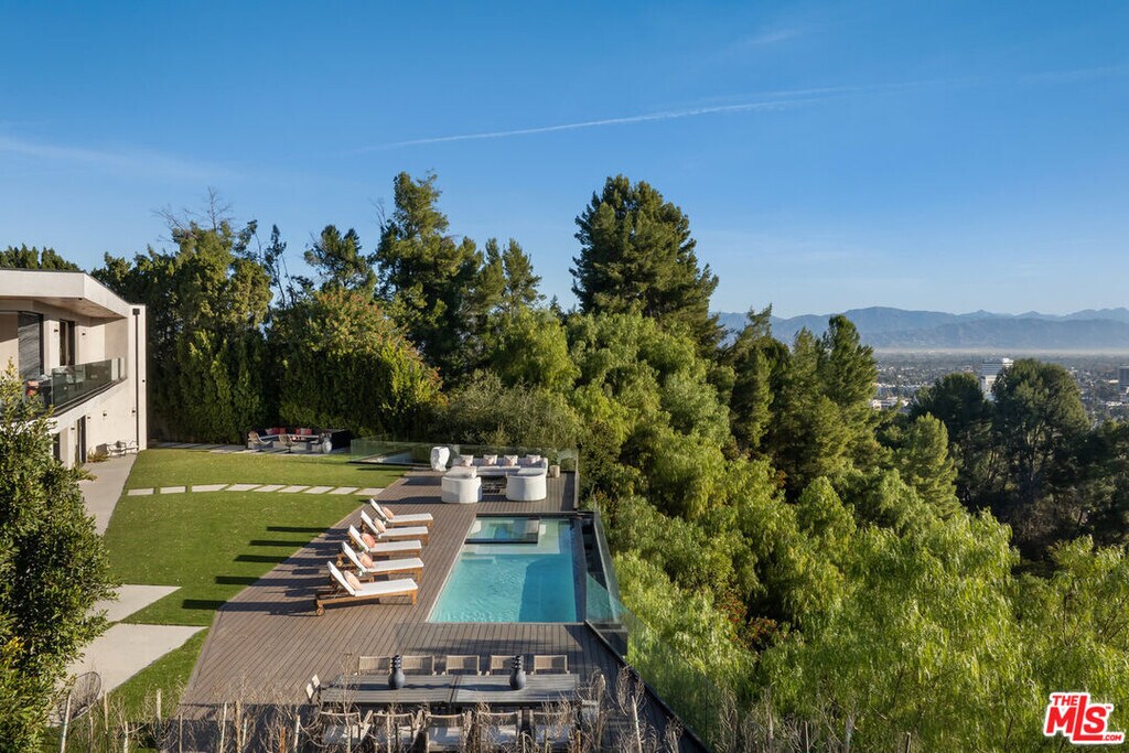 Nestled on a tranquil cul-de-sac within Encino's exclusive Royal Oaks neighborhood, this breathtaking estate redefines luxurious living. Privately set behind gates, the property boasts sweeping views and an expansive floor plan designed for both comfort and sophistication. The main level features a gym, state-of-the-art theater, office, and an en-suite guest bedroom. Seamlessly connected living, dining, and kitchen spaces open to a stunning backyard, where panoramic vistas enhance every moment. Outdoor living is elevated with a cozy fire-pit lounge, a summer kitchen, and an al-fresco dining area, creating an idyllic retreat.The primary suite offers a true sanctuary with unparalleled views, dual walk-in closets, and a spa-inspired bathroom. The upper level adds to the allure, with four spacious guest bedrooms and an inviting upstairs lounge. Crowned by a rooftop deck, the home provides a second summer kitchen and ample space to entertain under the stars. This rare gem combines privacy, elegance, and modern amenities, offering a lifestyle of unparalleled sophistication in one of Encino's most sought-after locations. MLS# 26641449