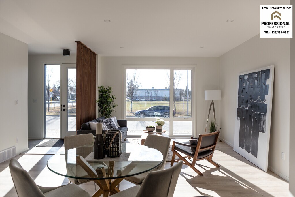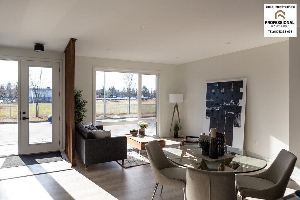4 BED | 3.5 BATH with Garage | Near Schools & Parks | Bright Modern Living Townhouse – 16114 99 Ave NW Edmonton AB T5P 0J6 • 4 Bedrooms | 3.5 Bathrooms • Rent: $2,500 + Utilities (tenant responsibility) • Lease Term: 12-month fixed term • Parking: Single Garage INCLUDED! • No pets • Credit, Reference & employment checks will be required with applications. Features: 1) Bright open-concept main floor with oversized windows and abundant natural light 2) Luxury vinyl plank flooring throughout main living areas 3) Modern kitchen with quartz countertops, soft-close cabinetry, and full stainless-steel appliance package 4) Spacious bedrooms with large windows and generous closet space 5) Stylish bathrooms featuring double-sink vanity, contemporary fixtures, and tiled shower 6) In-suite laundry for added convenience 7) Neutral, modern colour palette that complements any décor 8) Private main-floor living with excellent sound separation from other levels 9) Attached garage with direct home access – ideal for Alberta winters 10) Large windows facing green space, providing a bright and welcoming atmosphere 11) Thoughtfully designed storage throughout the home for family organization 12) Quiet residential street with sidewalks and mature trees 13) Steps from parks, playgrounds, and walking paths 14) Close to schools, daycare, shopping, transit, and major commuter routes 15) Easy access to downtown Edmonton and west-end amenities *** Photos are from a comparable unit and are for reference only. Finishes and colours may vary. Offered by PropFit Property Management - a professional property management group licensed under the Professional Realty Group. *Advertised price reflects after discount rate for a tenant paying on or before the 1st of the month and following lease rules and regulations. Any utility overages beyond the flat rate will be split among the tenants.