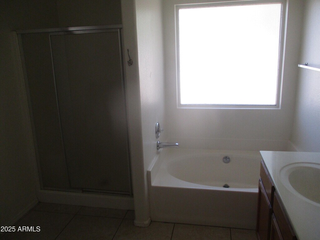 SINGLE STORY HOUSE ** 1266' ** 3 BEDROOM ** 2 BATH ** HOUSE HAS NEW INTERIOR PAINT ** OPEN FLOOR PLAN ** TILE & VINYL PLANK FLOORS EAT IN KITCHEN WITH FRIDGE INCLUDED ** INSIDE LAUNDRY WITH WASHER/DRYER MASTER HAS SEP SHOWER/TUB ** W/I CLOSET ** DOUBLE SINKS BLIND AND FANS THROUGHOUT 2 CAR GARAGE W/ CABINETS