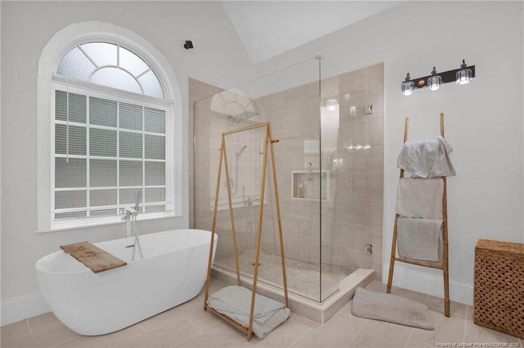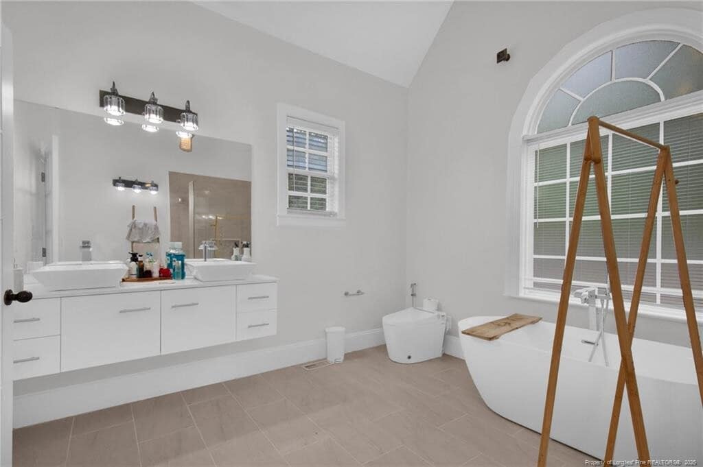Welcome to this spacious and beautifully maintained all- brick 2-story home, located in the highly desirable Riverbluff community. This exceptional property includes a 2-car garage and offers access to a range of community amenities, including a clubhouse and a sparkling in-ground pool—all just a short walk from your front door. Step inside through the main entrance and be greeted by a bright and welcoming foyer that leads directly into the thoughtfully designed first-floor master bedroom. Recently remodeled by the current owners with both comfort and luxury in mind, this private retreat features a stunning bay window that fills the room with natural light, built-in modern wardrobes, and an elegant en suite bath. The master bathroom is truly a standout, boasting a luxurious double vanity, a high-end bidet toilet, and a spacious walk-in tiled shower, all designed to elevate your everyday living experience. Just off the main hall, you'll find a formal dining room—perfect for hosting dinner parties or enjoying family meals. The heart of the home, the kitchen, is spacious and thoughtfully designed, featuring an open-concept layout that provides clear sightlines into the living room. It includes a center island, a pantry, and ample cabinetry, offering both functionality and comfort for everyday living and entertaining. The living room features soaring vaulted ceilings, creating a light and airy atmosphere ideal for relaxing or entertaining guests. Also on the first floor is an additional bedroom that can easily be used as a home office or guest suite, conveniently located near a full bathroom and the laundry room. Upstairs, you’ll find even more space with two generously sized bedrooms, a third full bathroom, and a versatile bonus room that can serve as a fifth bedroom, media room, playroom, or whatever fits your lifestyle. Situated just minutes from Downtown Fayetteville, this home offers easy access to shopping, dining, and entertainment. It’s also conveniently located near multiple gates to Fort Liberty (formerly Fort Bragg), making it a great option for military families or those seeking a short commute. With its combination of elegant updates, thoughtful layout, and unbeatable location, this home is priced to sell and won’t last long. Schedule your private showing today and come experience all that Riverbluff living has to offer!