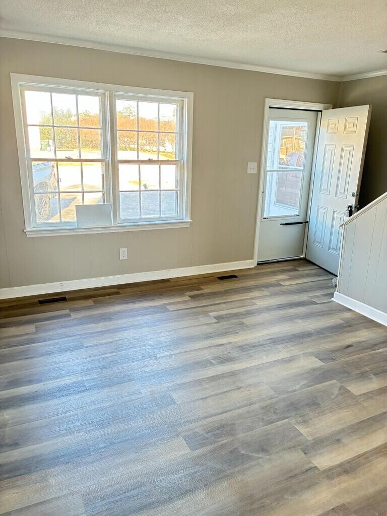 none 2 Bedroom 1.5 Bathroom duplex unit which has been completely renovated! Laminate flooring down stairs and carpet upstairs. Washer/Dryer hook up in kitchen area. Full bath up and half bath down. Central HVAC and storage closet outside. This unit is a 5 minute drive from Barton College!!